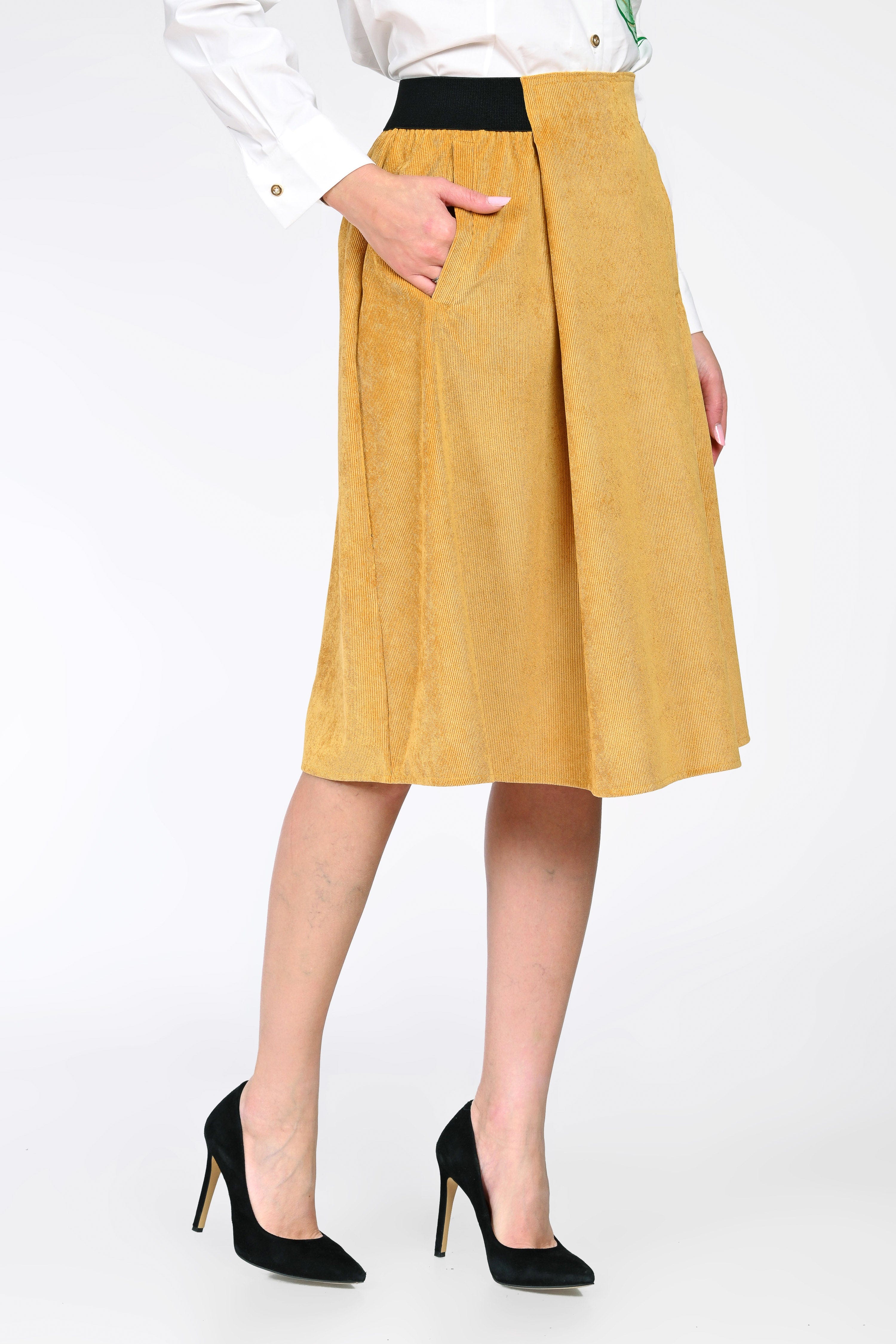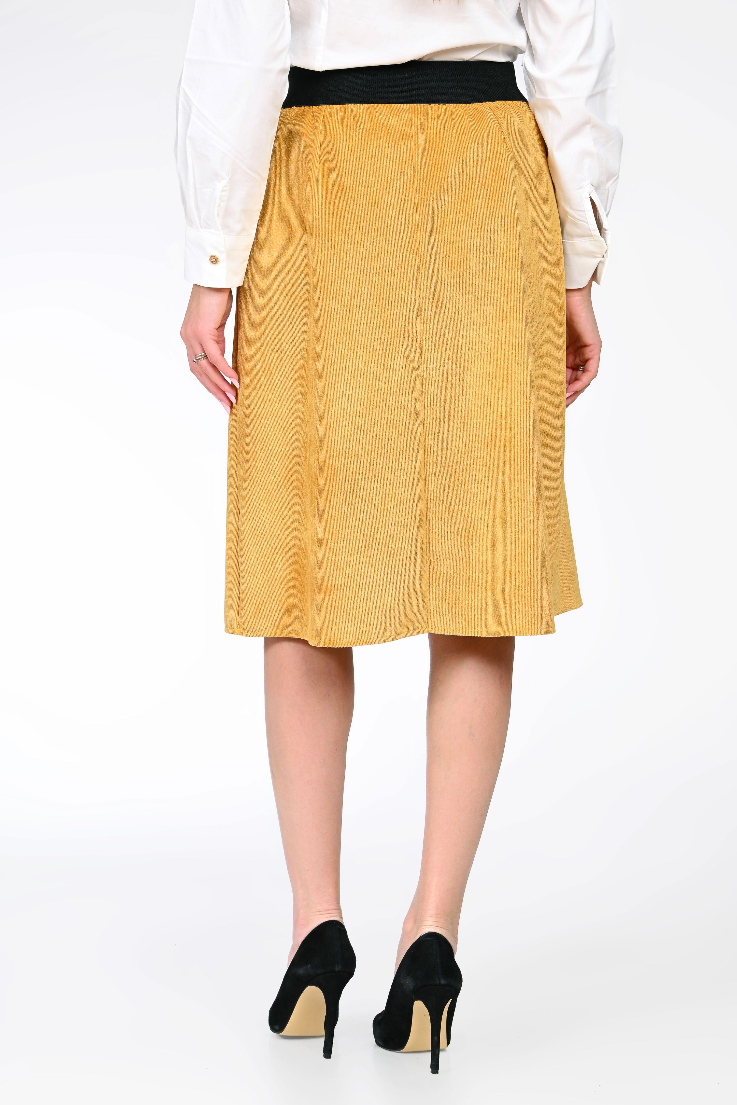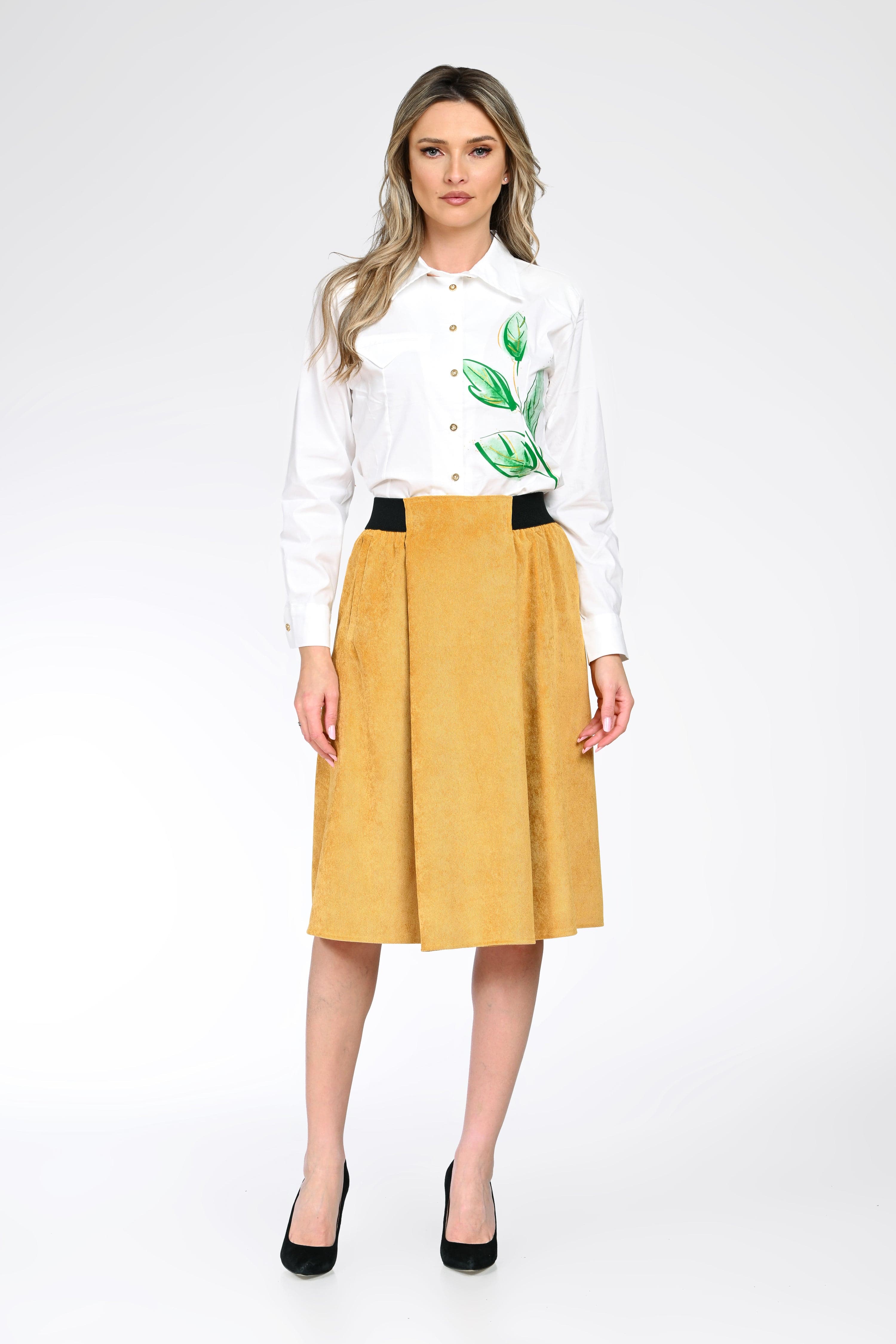 Bianca este o fustă midi feminină, realizată din material raiat, plăcut la atingere și potrivit pentru sezonul de toamnă–iarnă. Croiala lejeră, cu volum controlat, oferă confort și libertate de mișcare, în timp ce talie elastică contrastantă evidențiază talia și asigură o fixare perfectă.