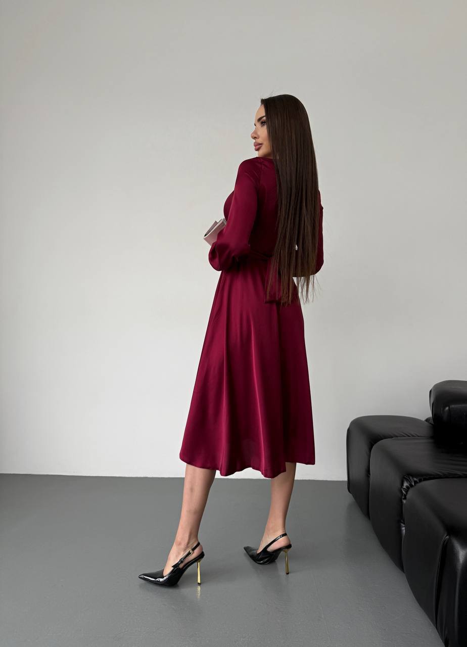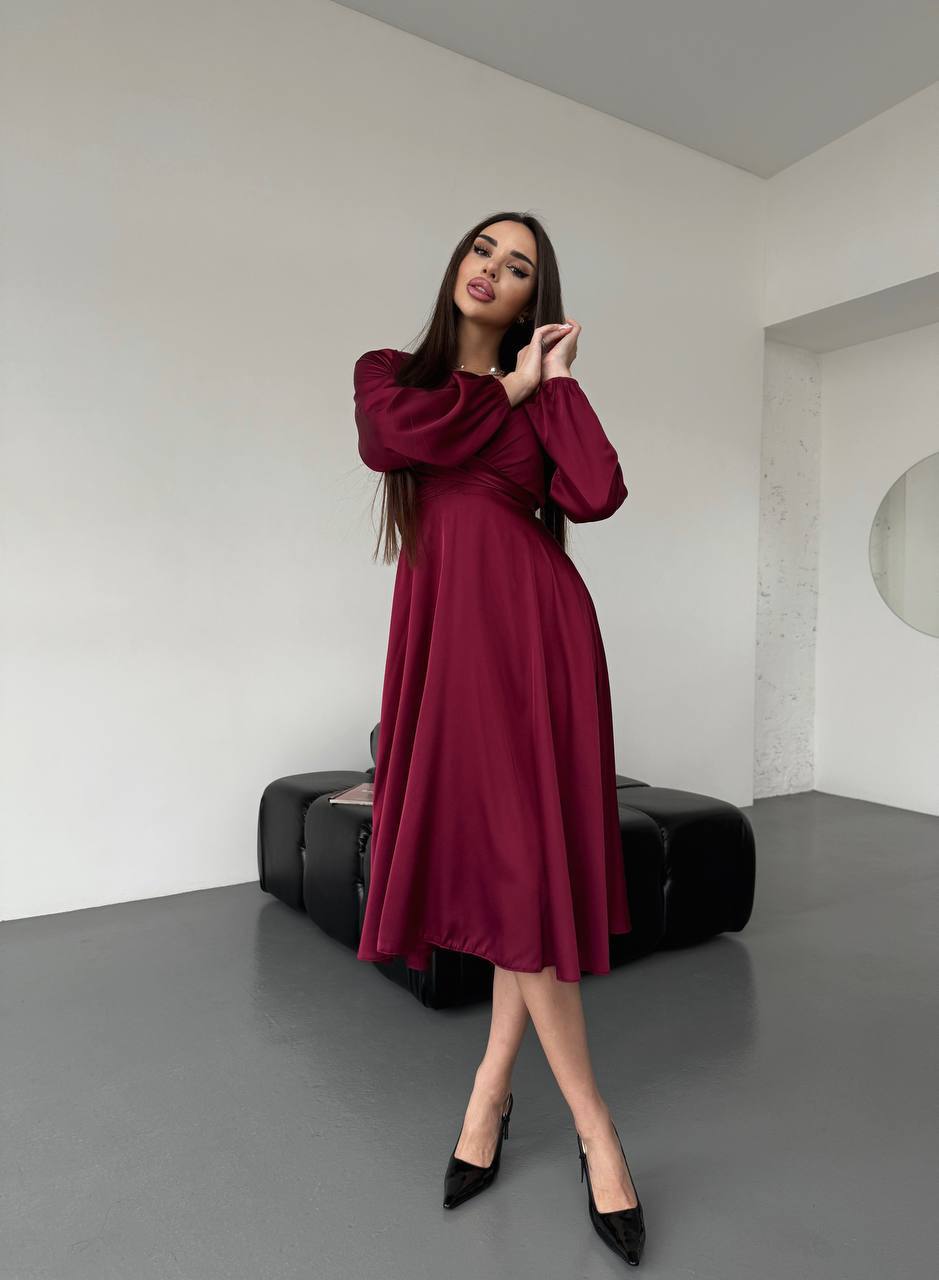 Rochie dama eleganta Zoe midi bordo este alegerea ideală pentru apariții elegante și feminine. Croiala fluidă avantajează silueta, iar detaliul drapat din talie subliniază armonios formele. Mânecile lungi, ușor bufante, oferă un plus de rafinament, făcând această rochie potrivită atât pentru evenimente speciale, cât și pentru ținute de seară sofisticate. Materialul plăcut la atingere asigură confort pe tot parcursul purtării.