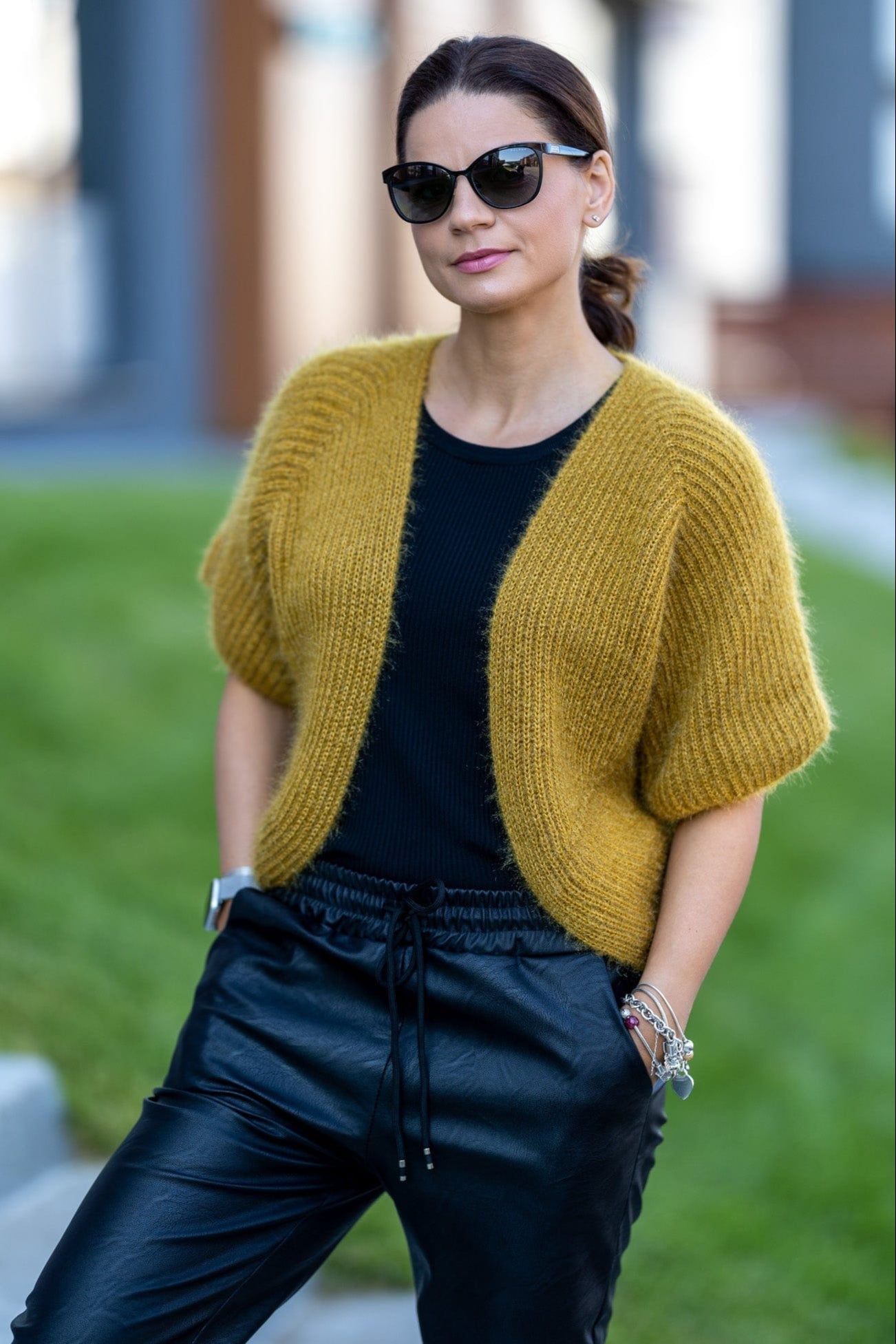 Cardigan scurt tricotat, gros, ideal in garderoba de primavara si toamna.