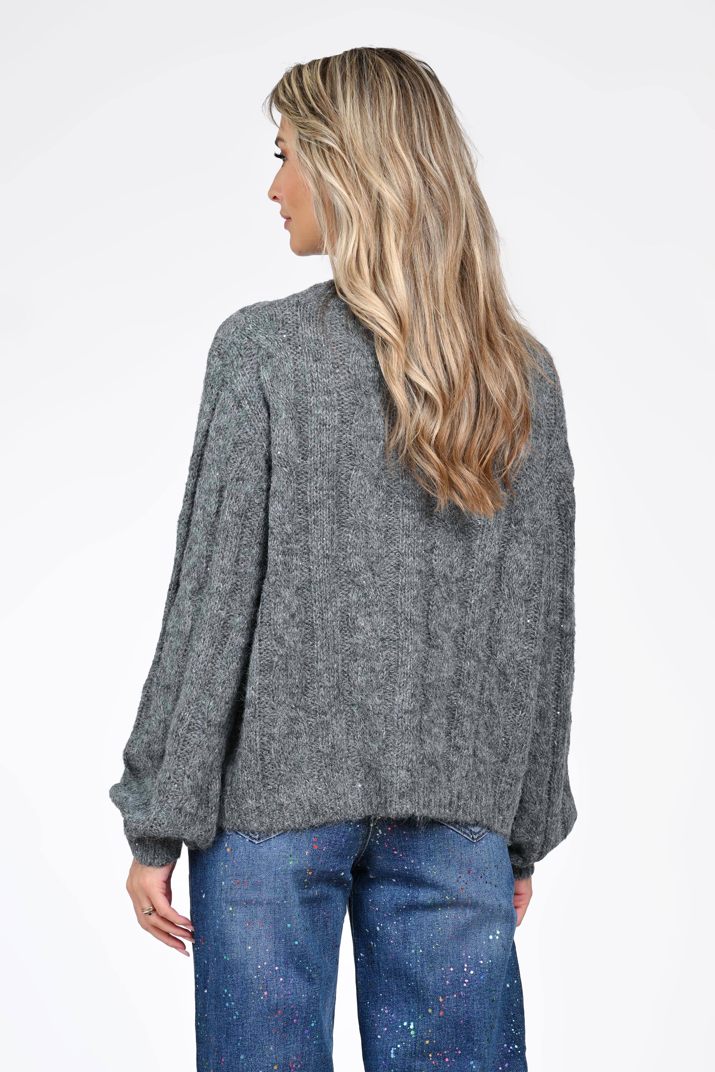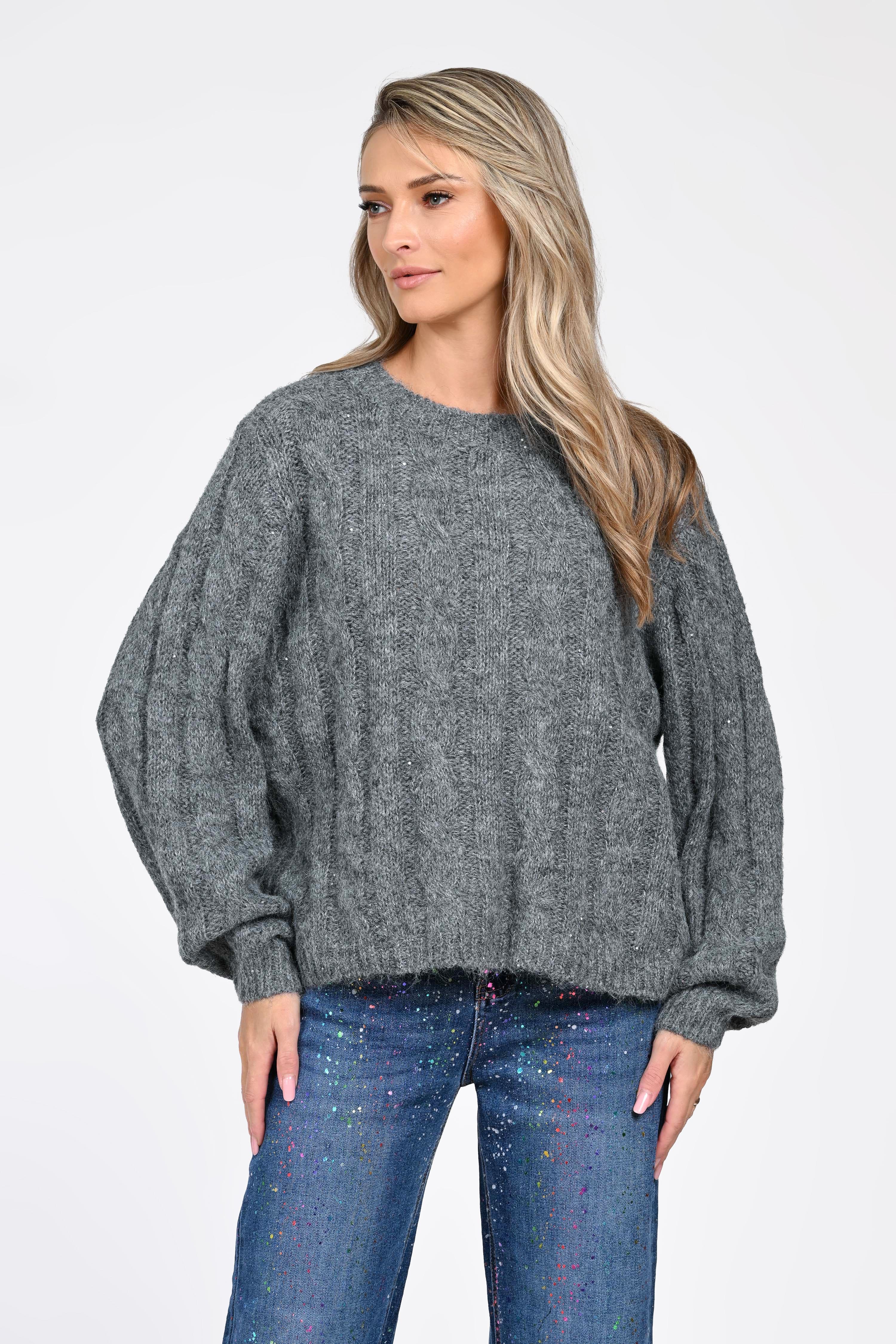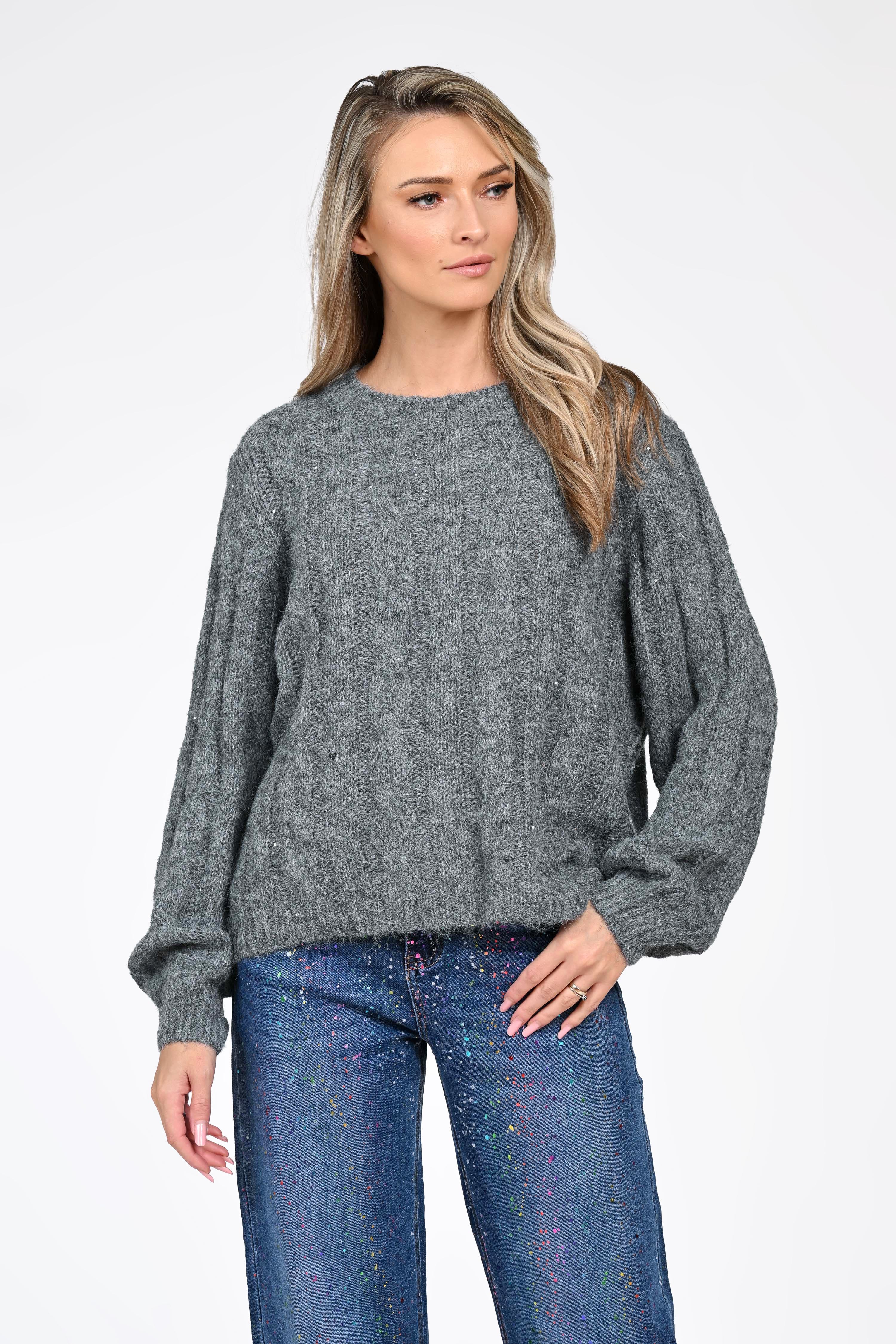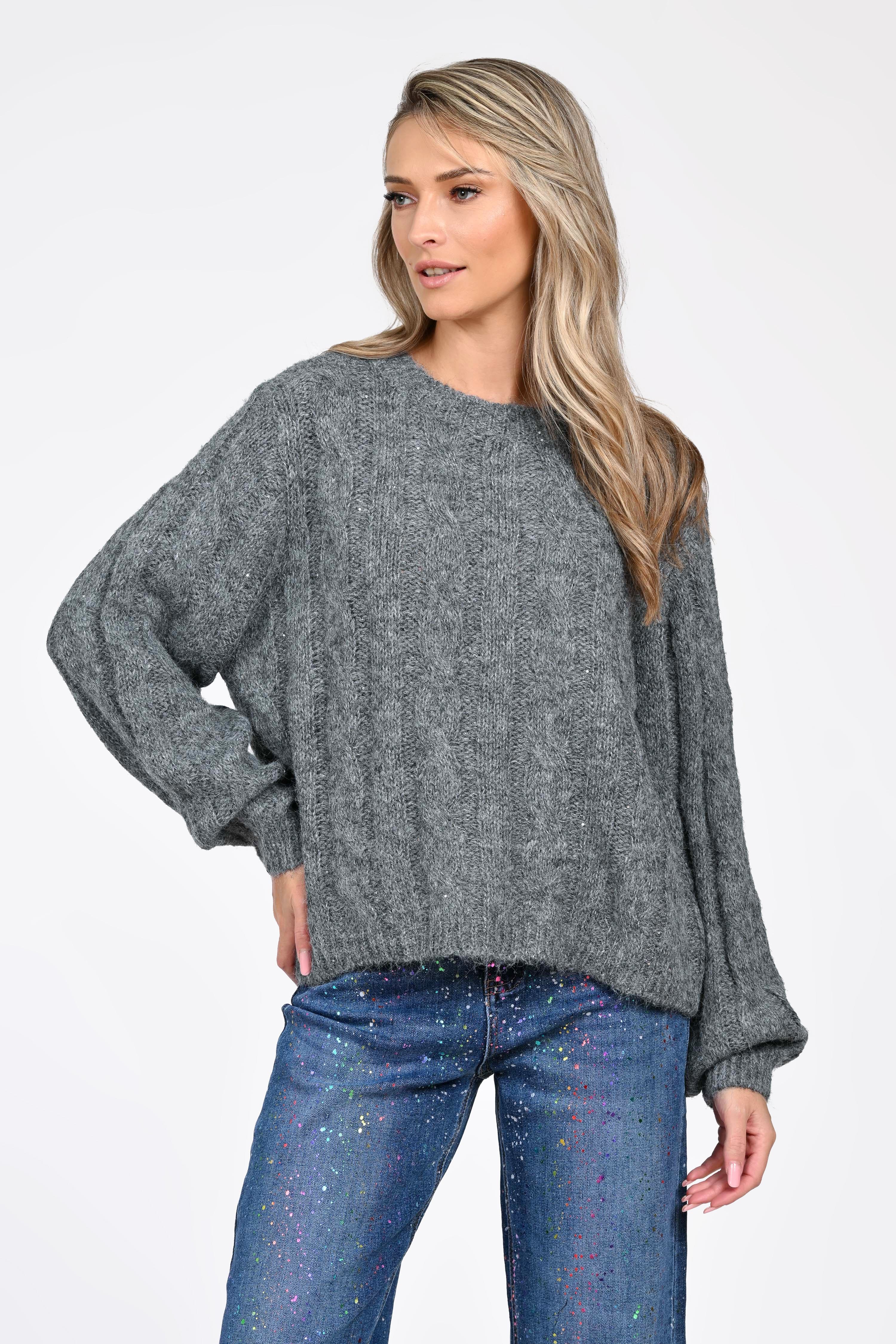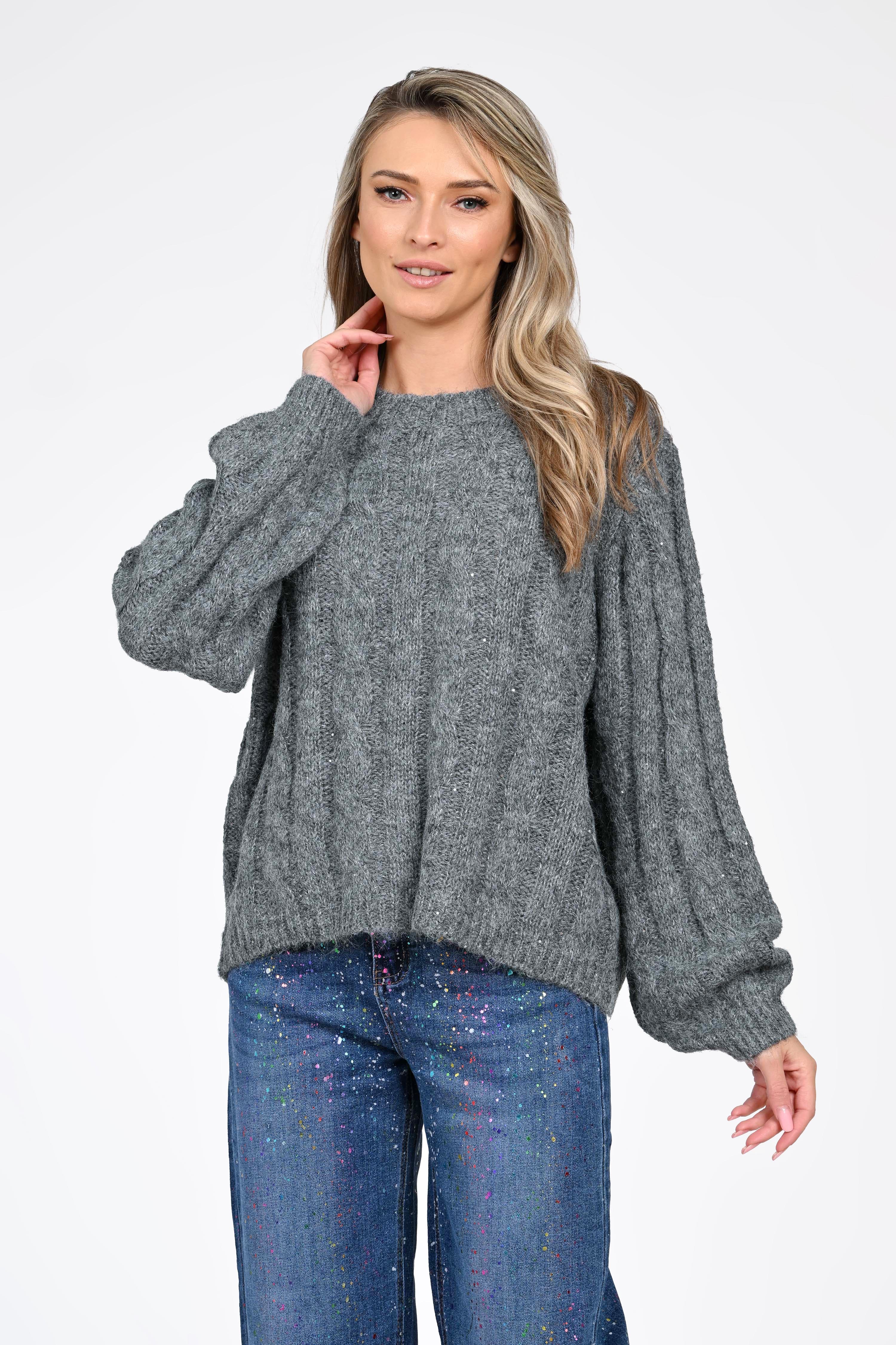 Mâneca ușor bufantă și finisajele elastice adaugă un plus de volum și rafinament, în timp ce nuanța de gri închis rămâne ușor de integrat în garderoba de toamnă-iarnă. Alina este acel pulover cozy pe care îl porți cu plăcere zi de zi, alături de jeanși, pantaloni din stofă sau chiar fuste.