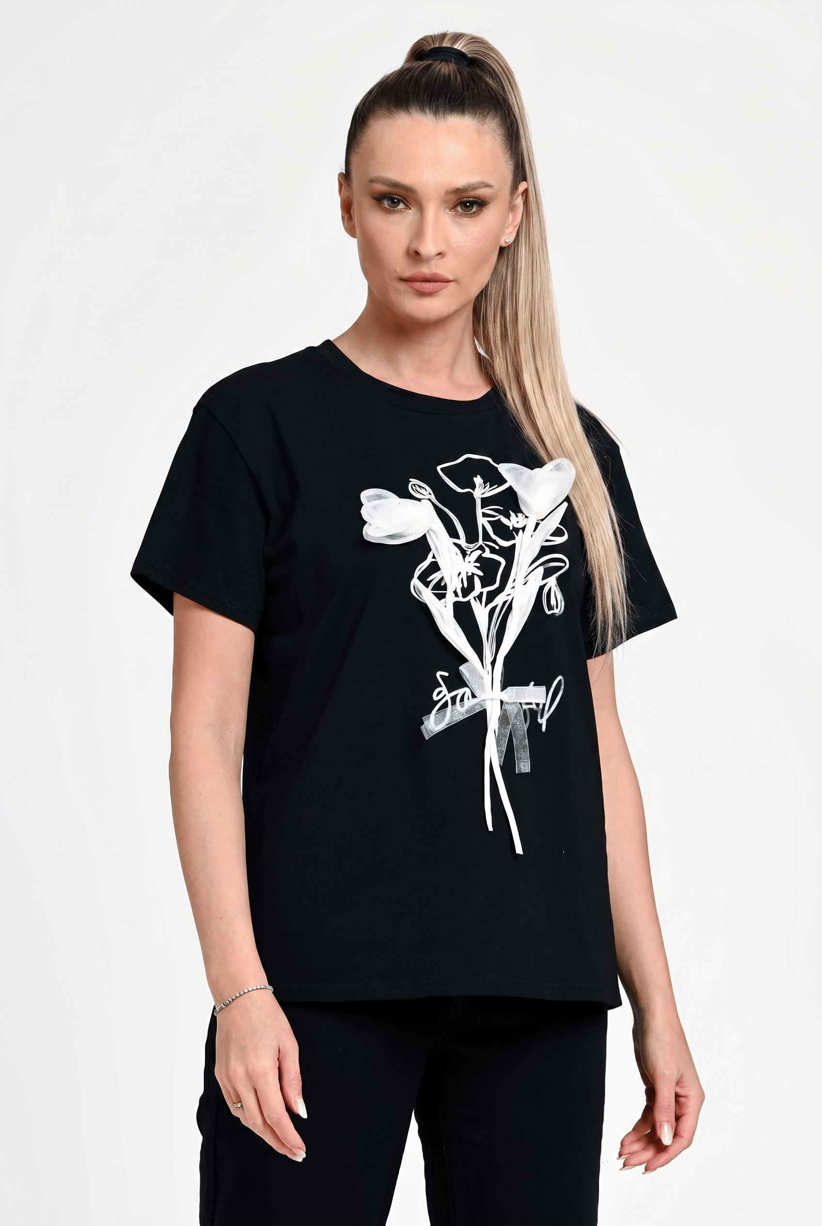 Bluză damă casual Bianca neagră cu imprimeu floral