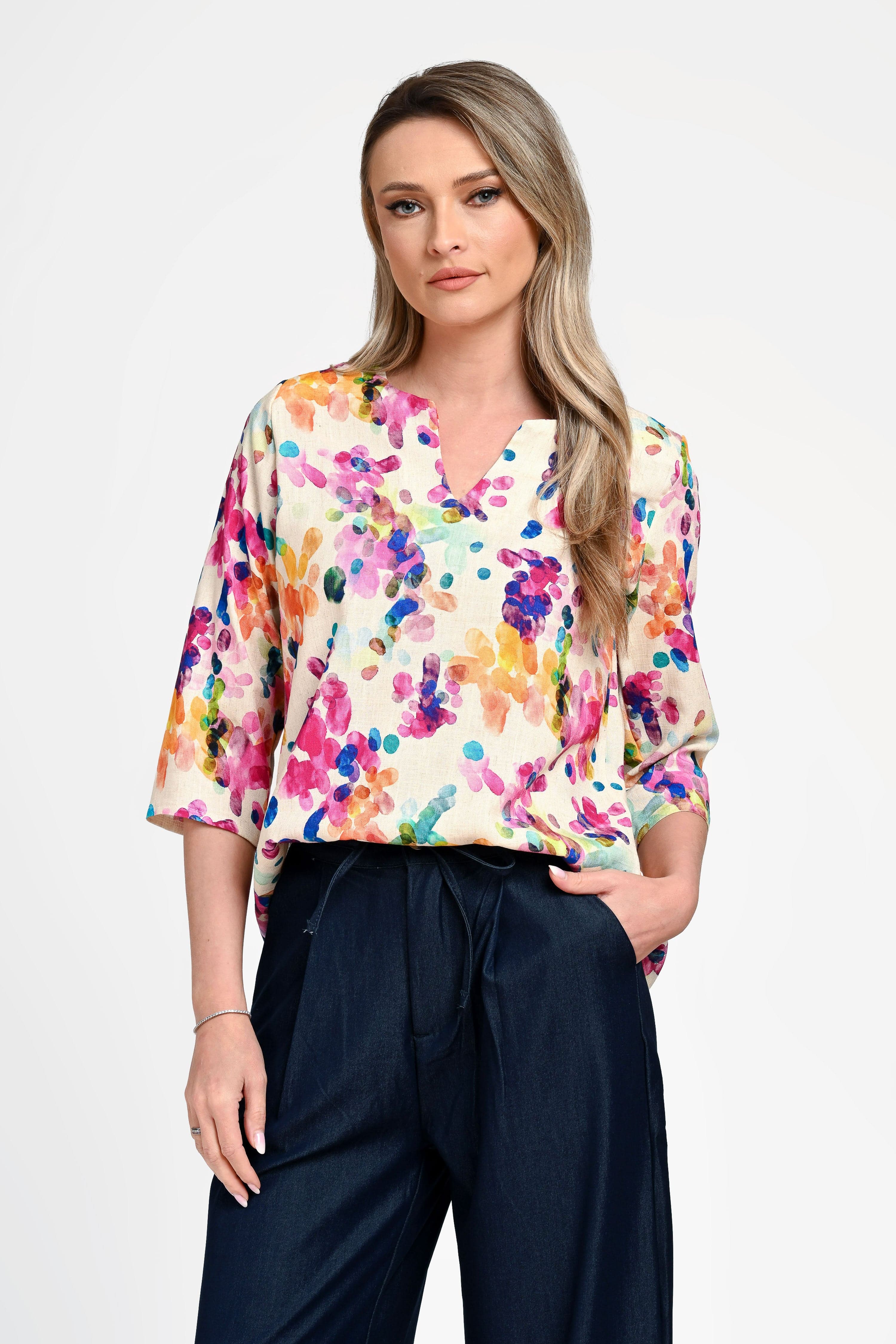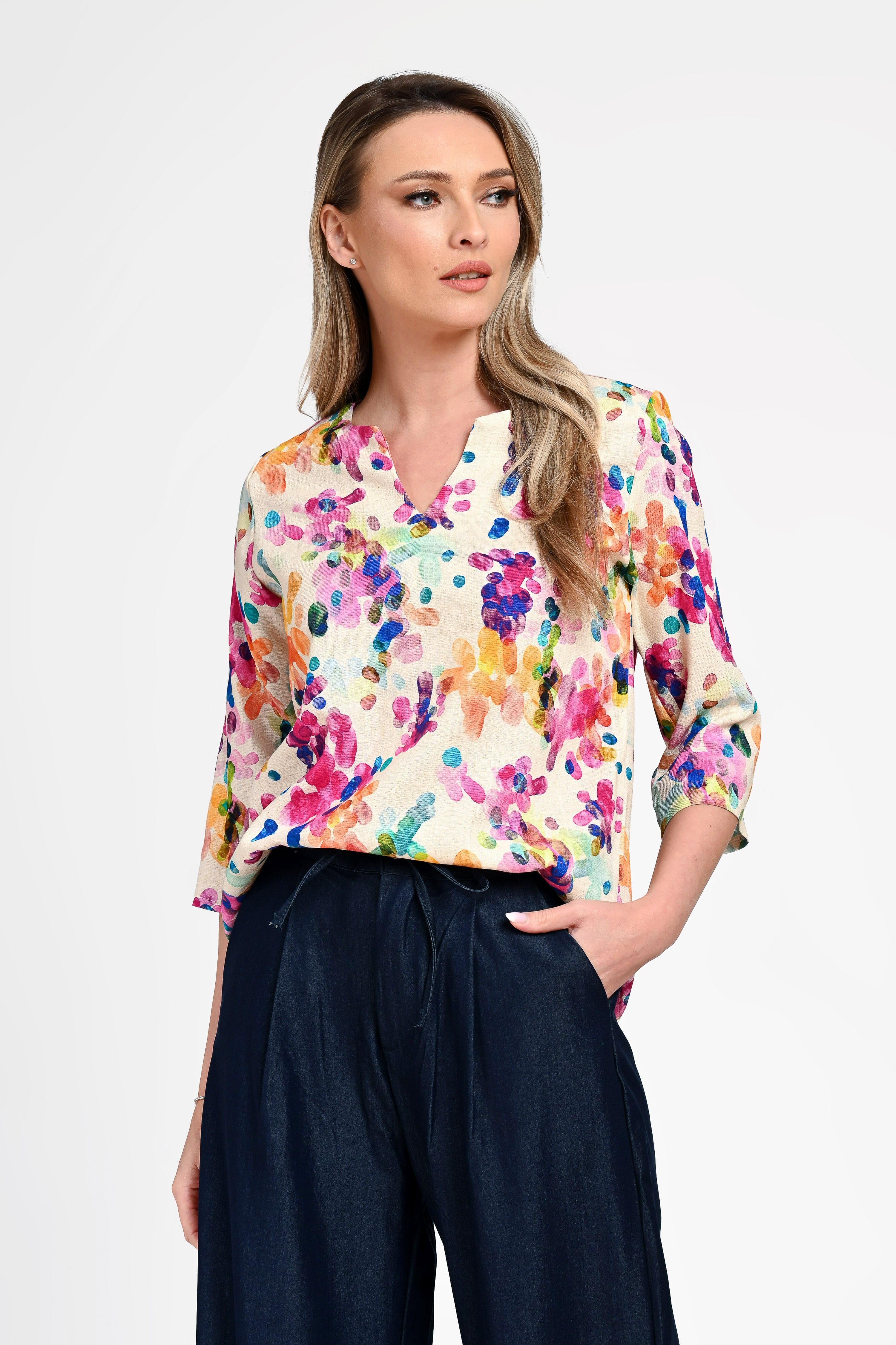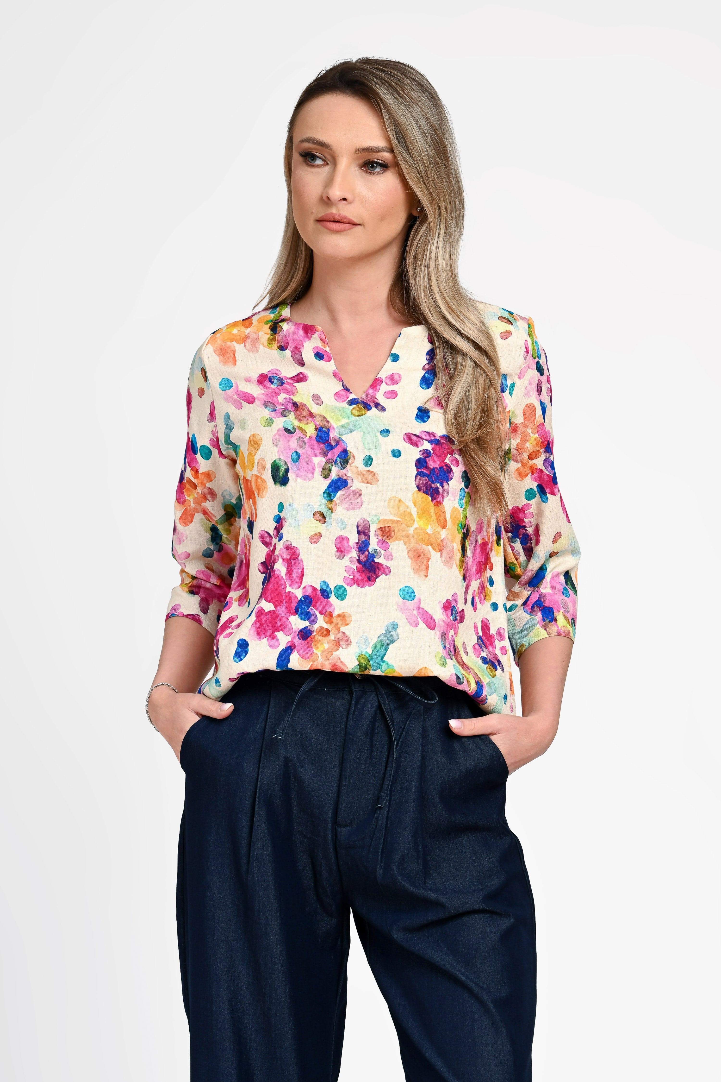 Bluză damă din in cu viscoză cu imprimeu colorat Monica