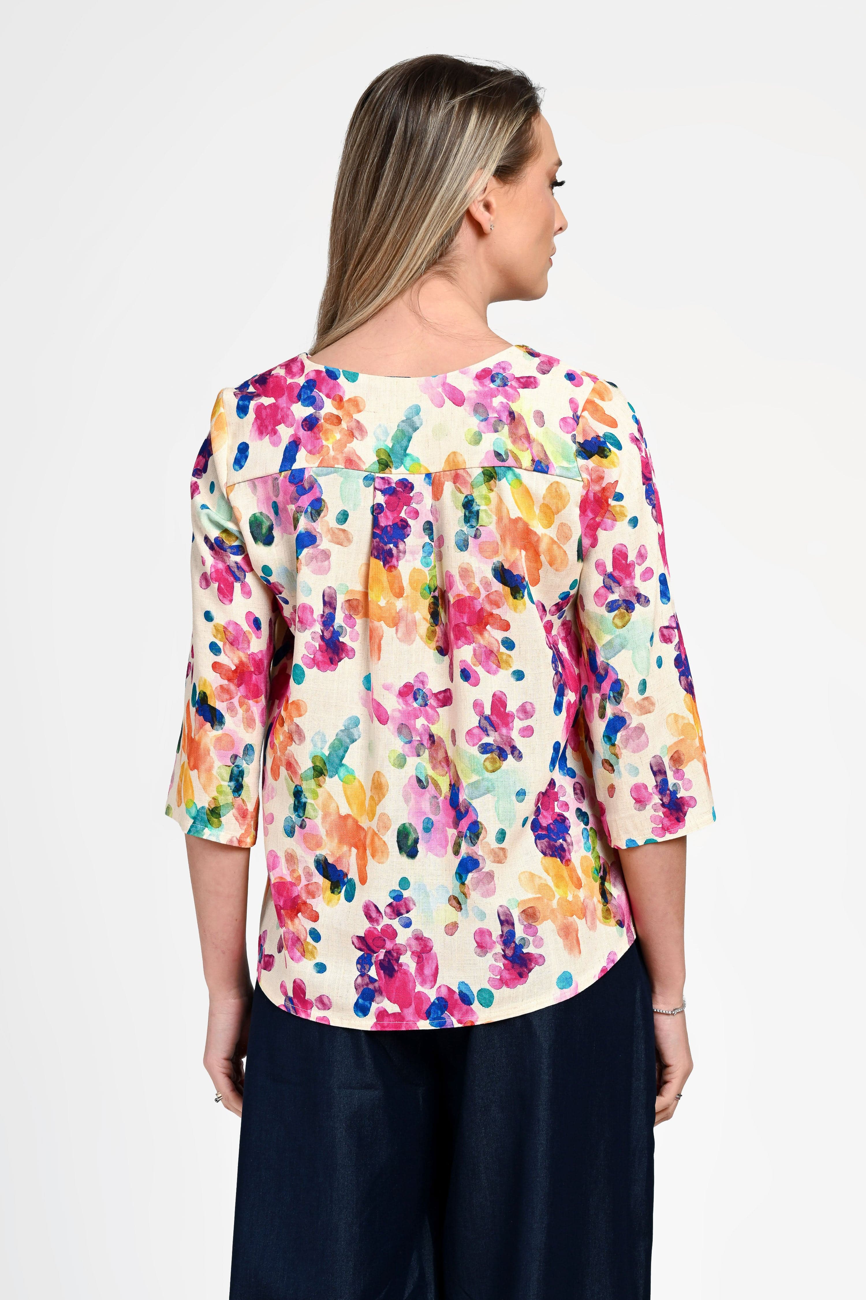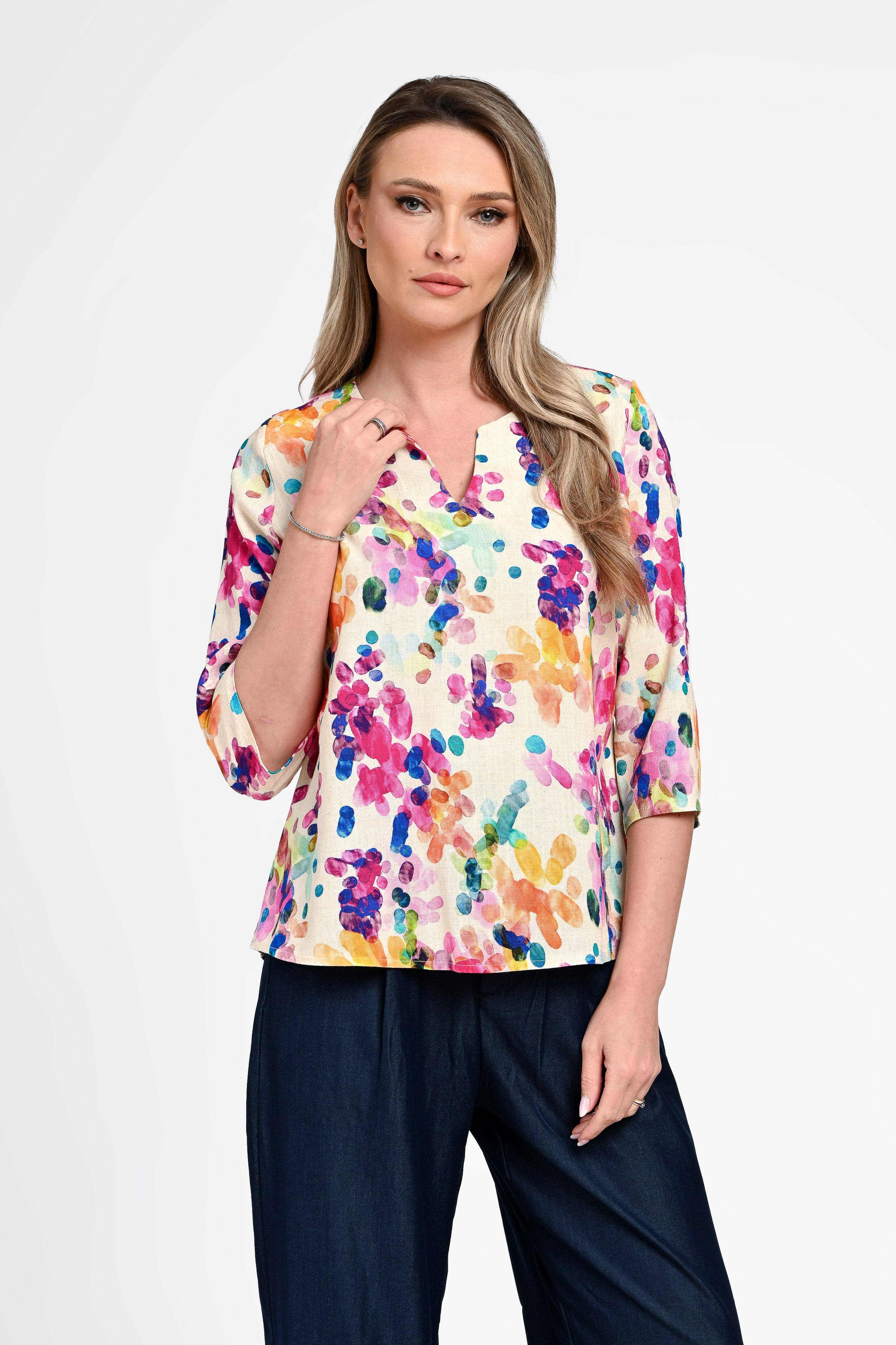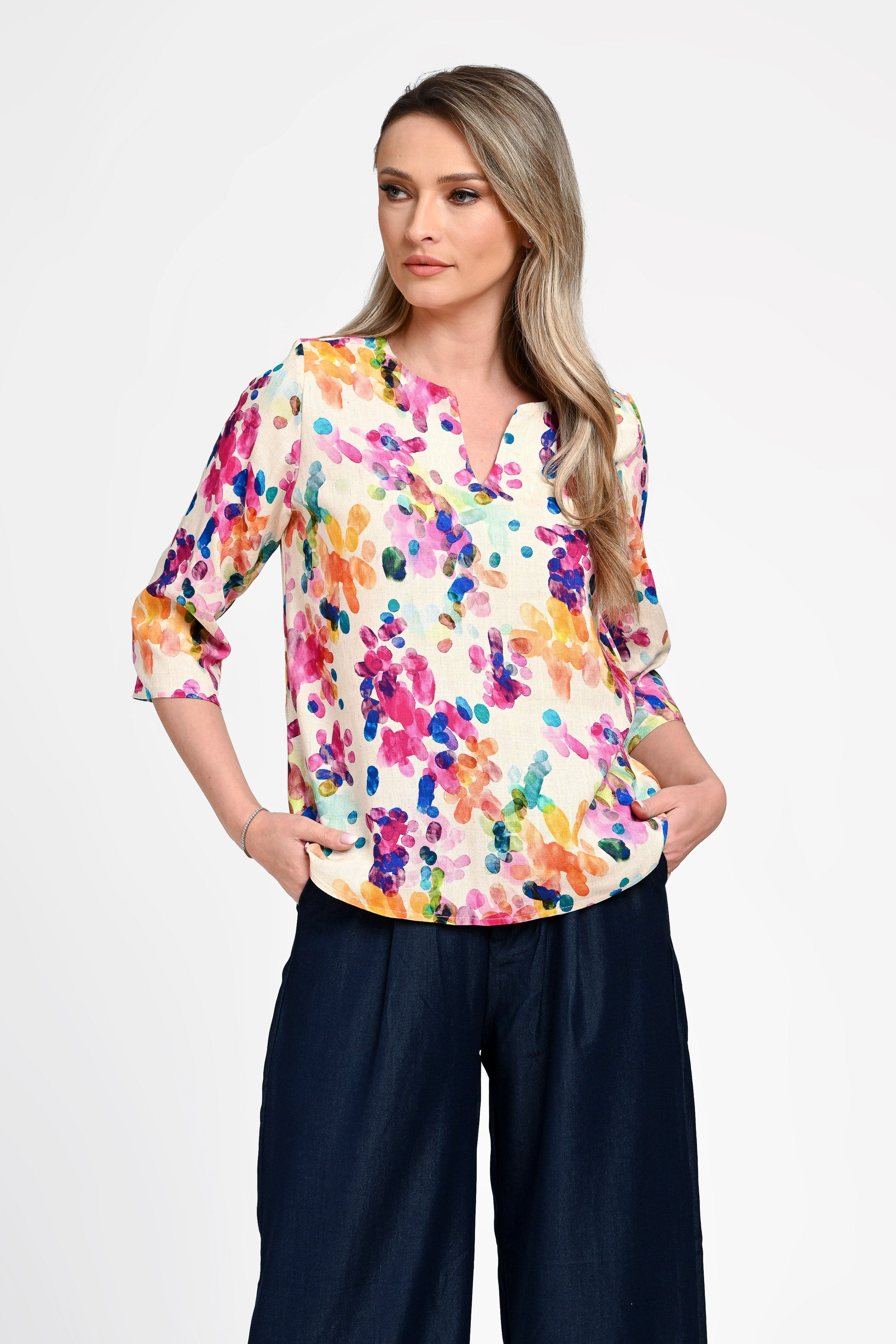 Bluză damă din in cu viscoză cu imprimeu colorat Monica