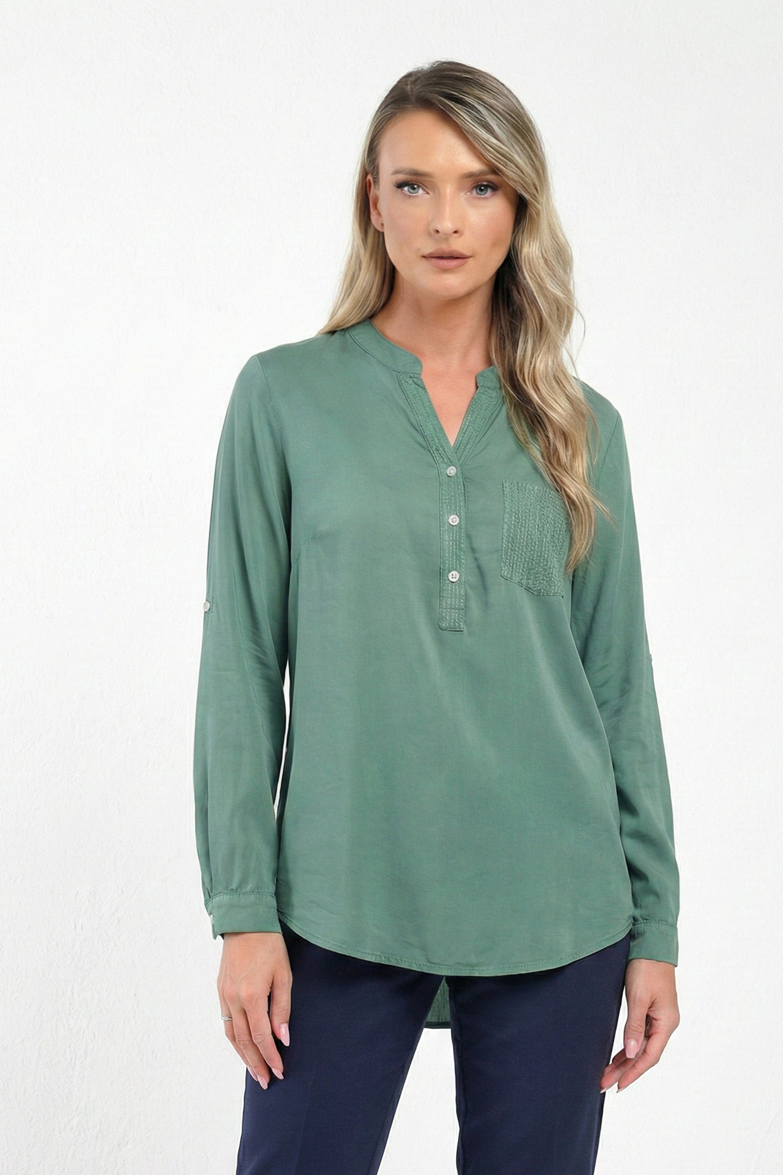Bluză damă verde casual cu buzunar texturat Olivia