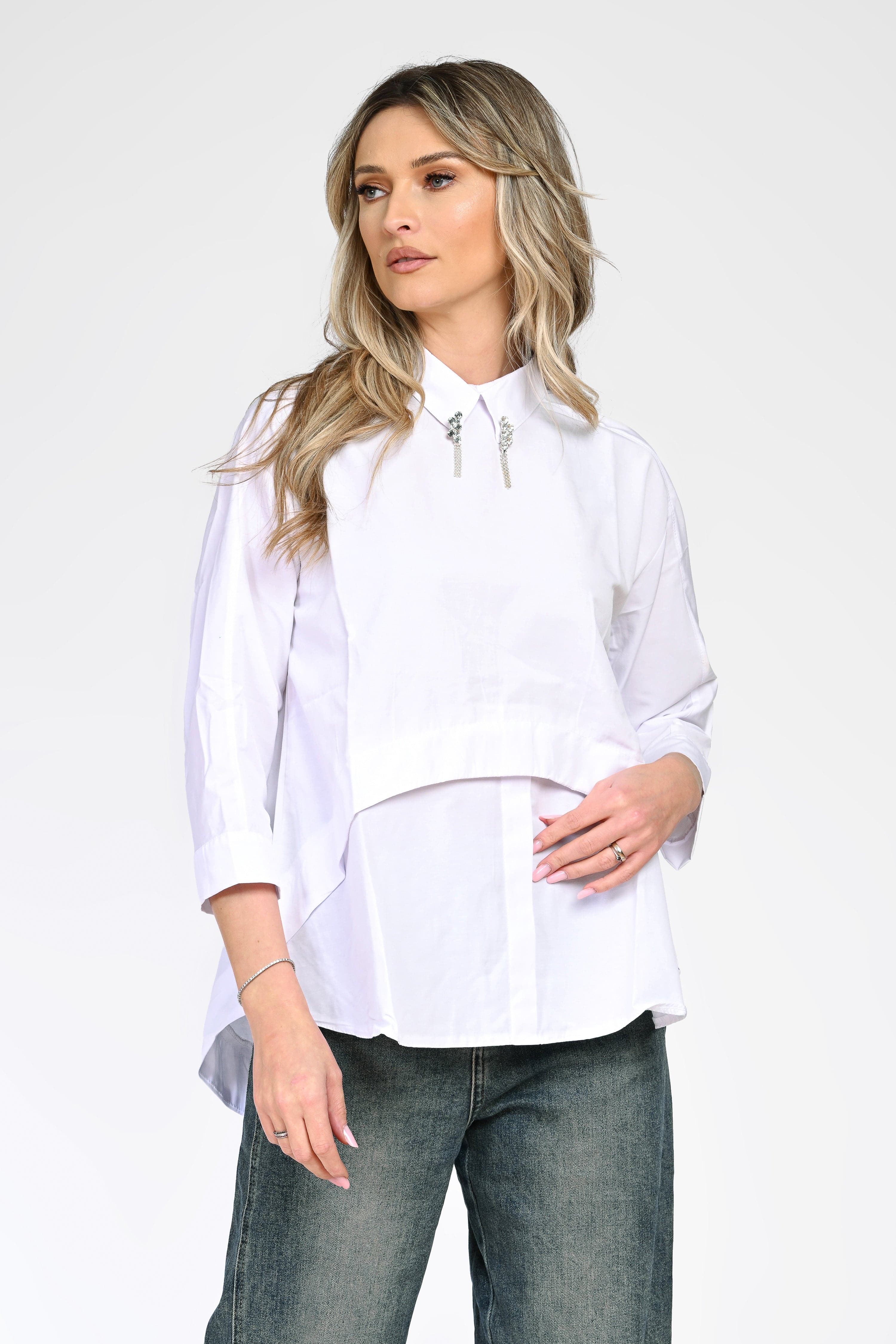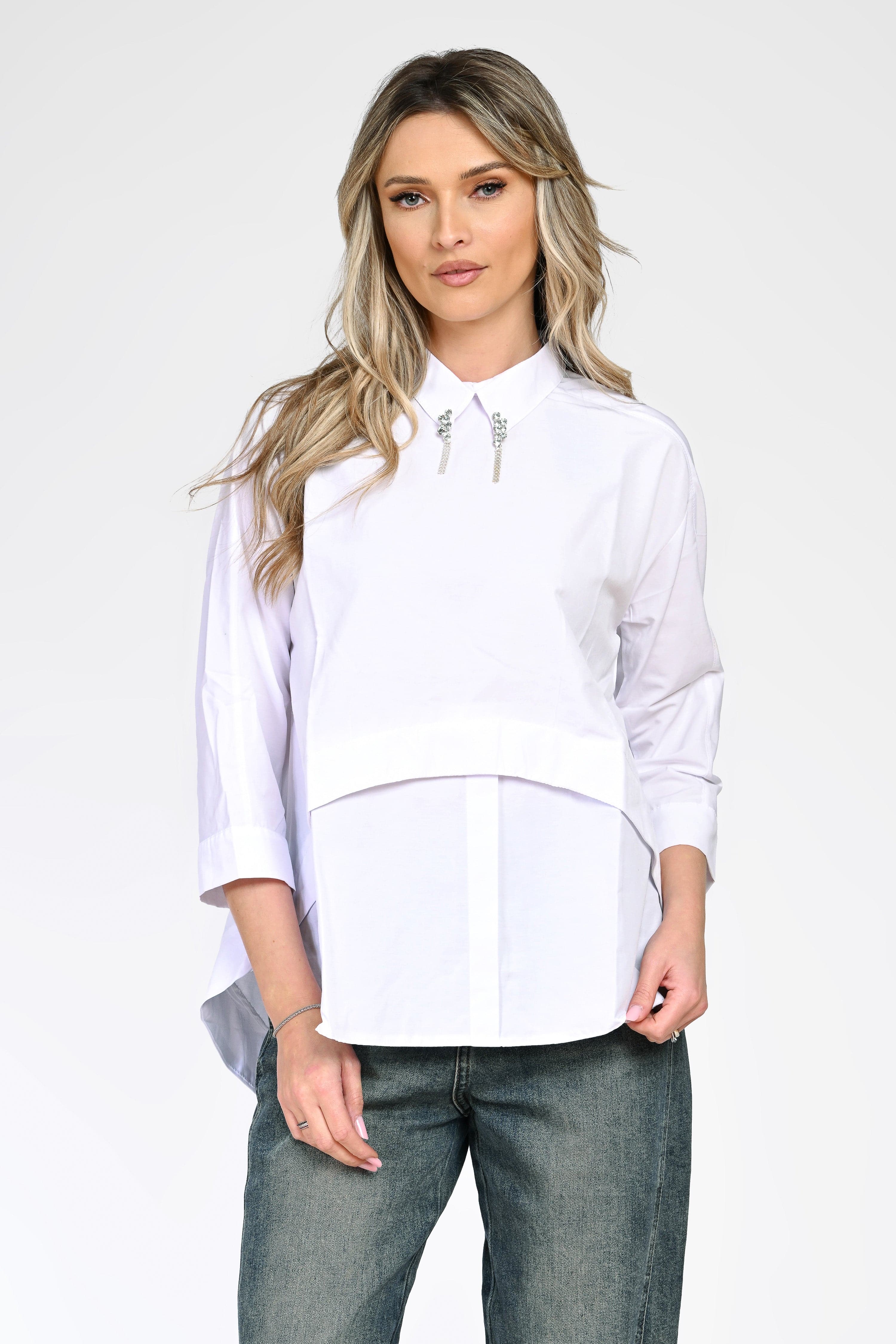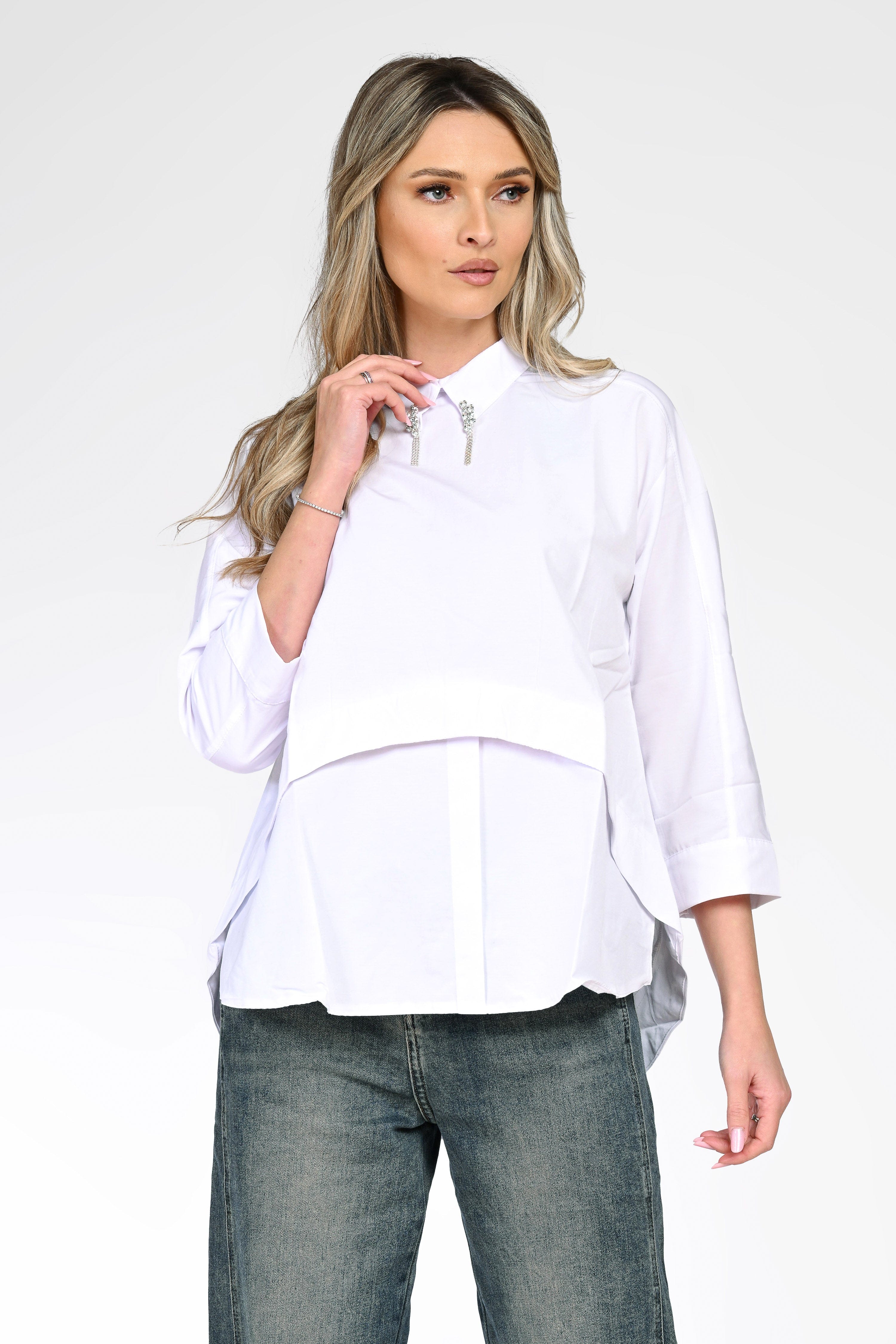 Cămașă damă albă cu design stratificat și detalii bijuterie Elise