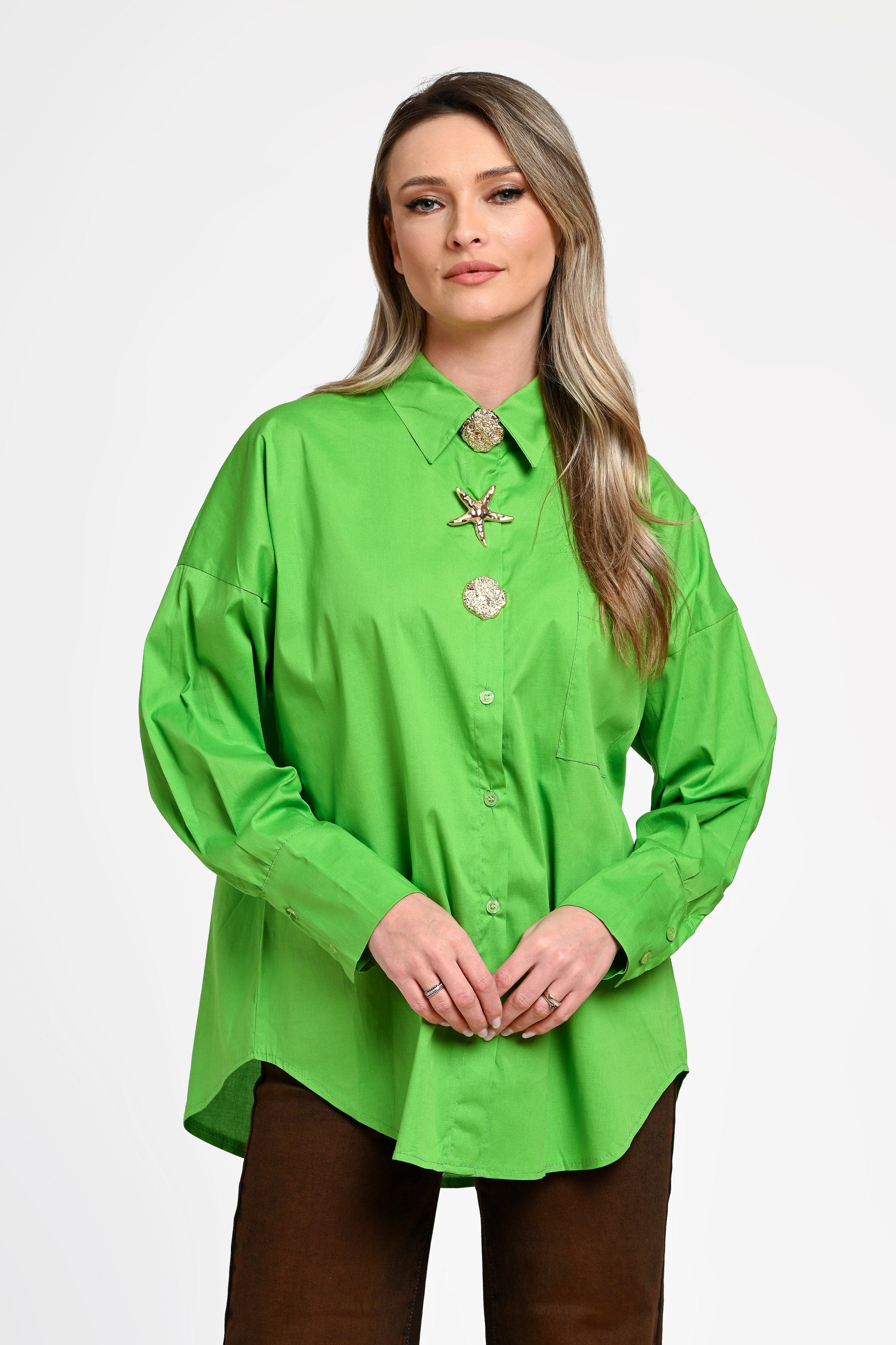 Cămașă damă verde lime cu nasturi decorativi Selene Lime
