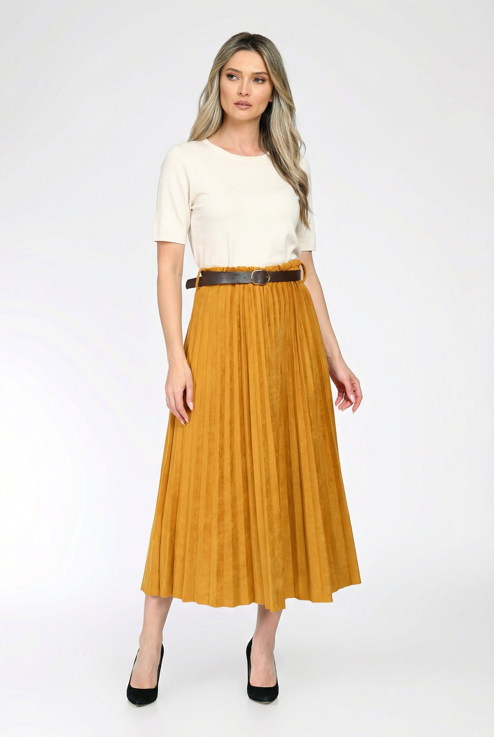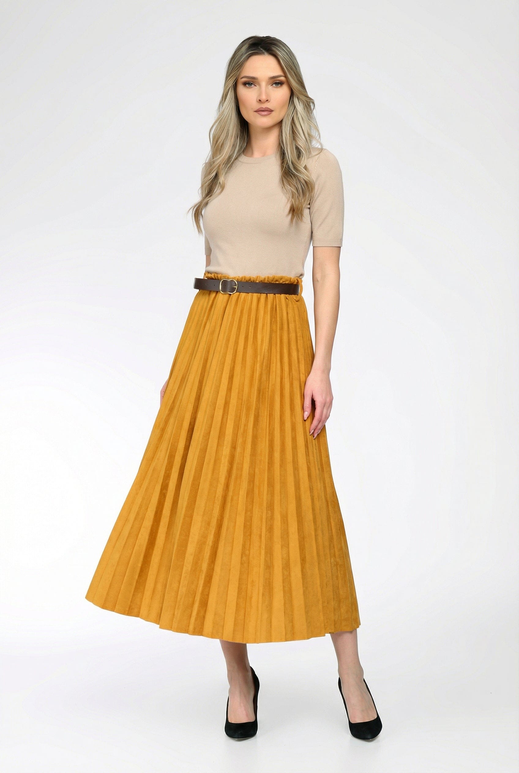 Fustă midi plisată cu curea – Evelina