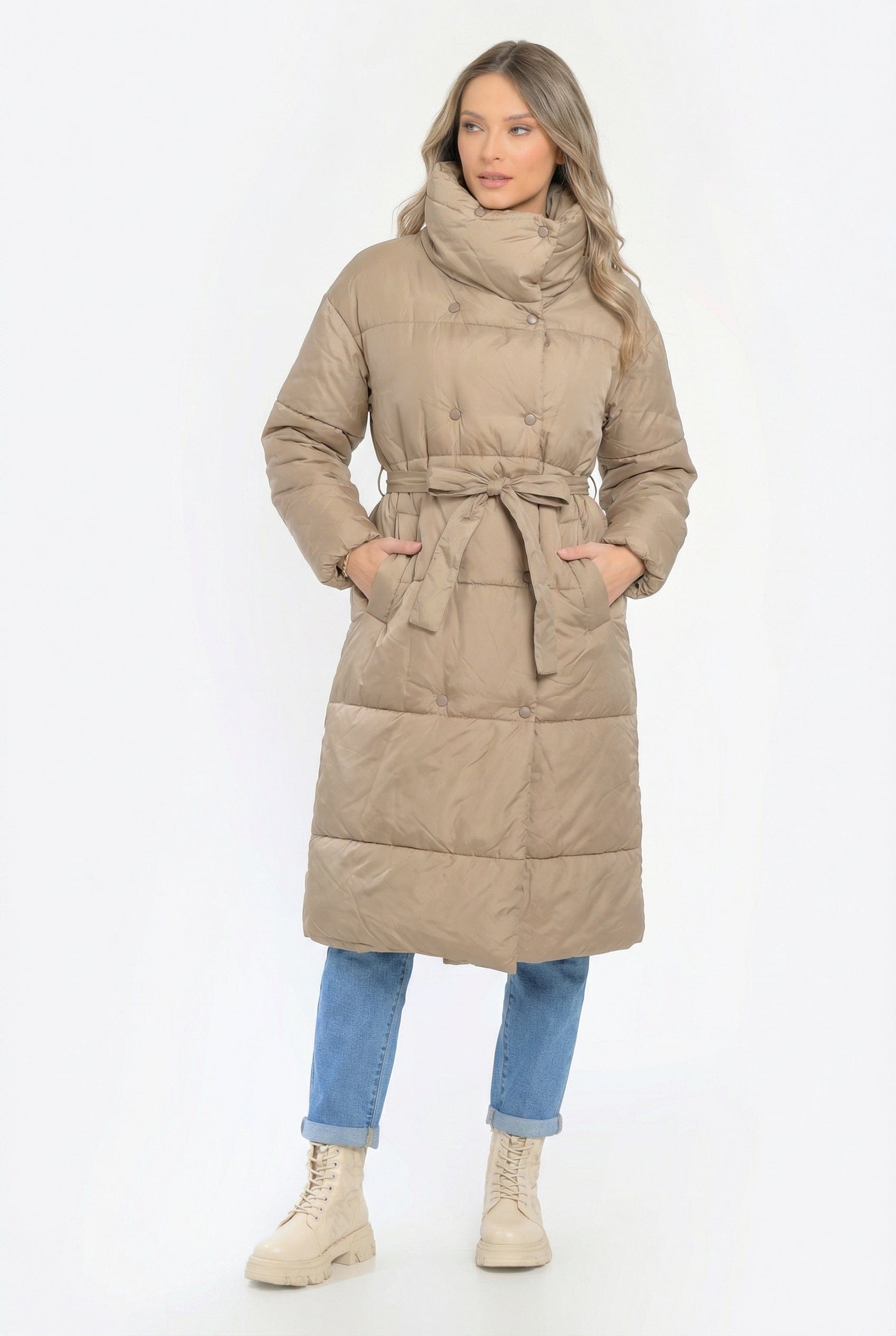 Geaca dama Beatrice  este un model lung, tip puffer, cu un design modern și practic, ideal pentru sezonul rece.