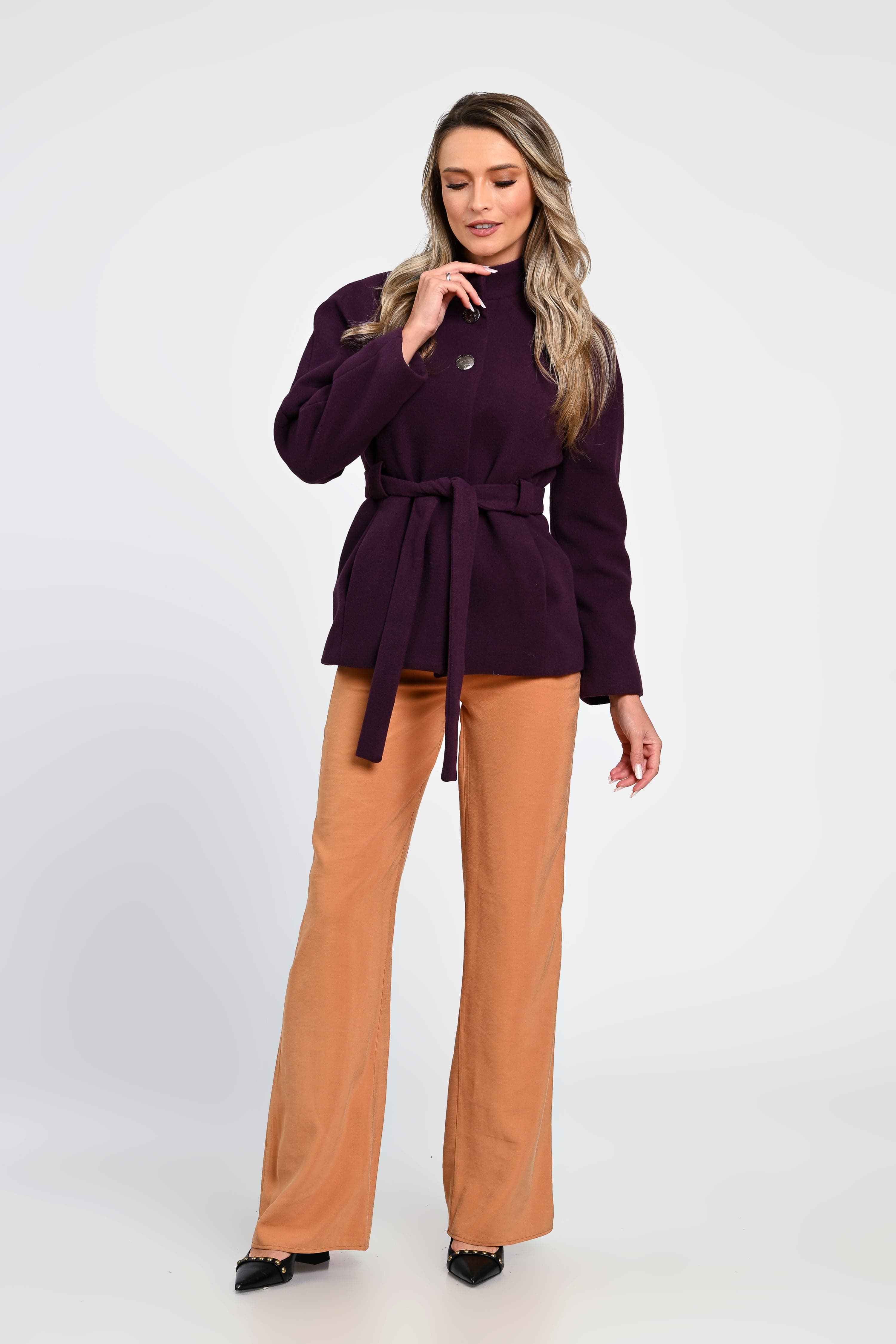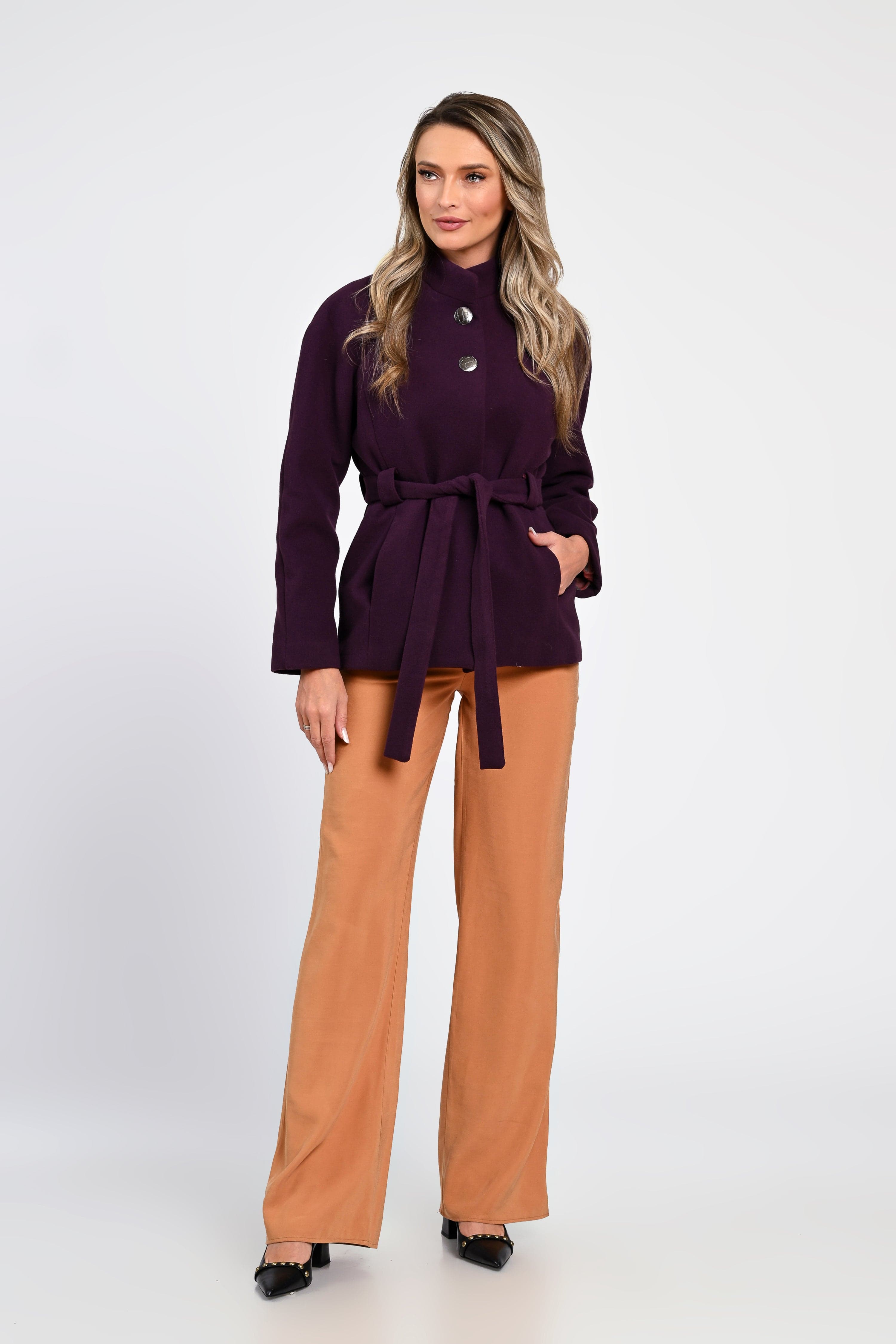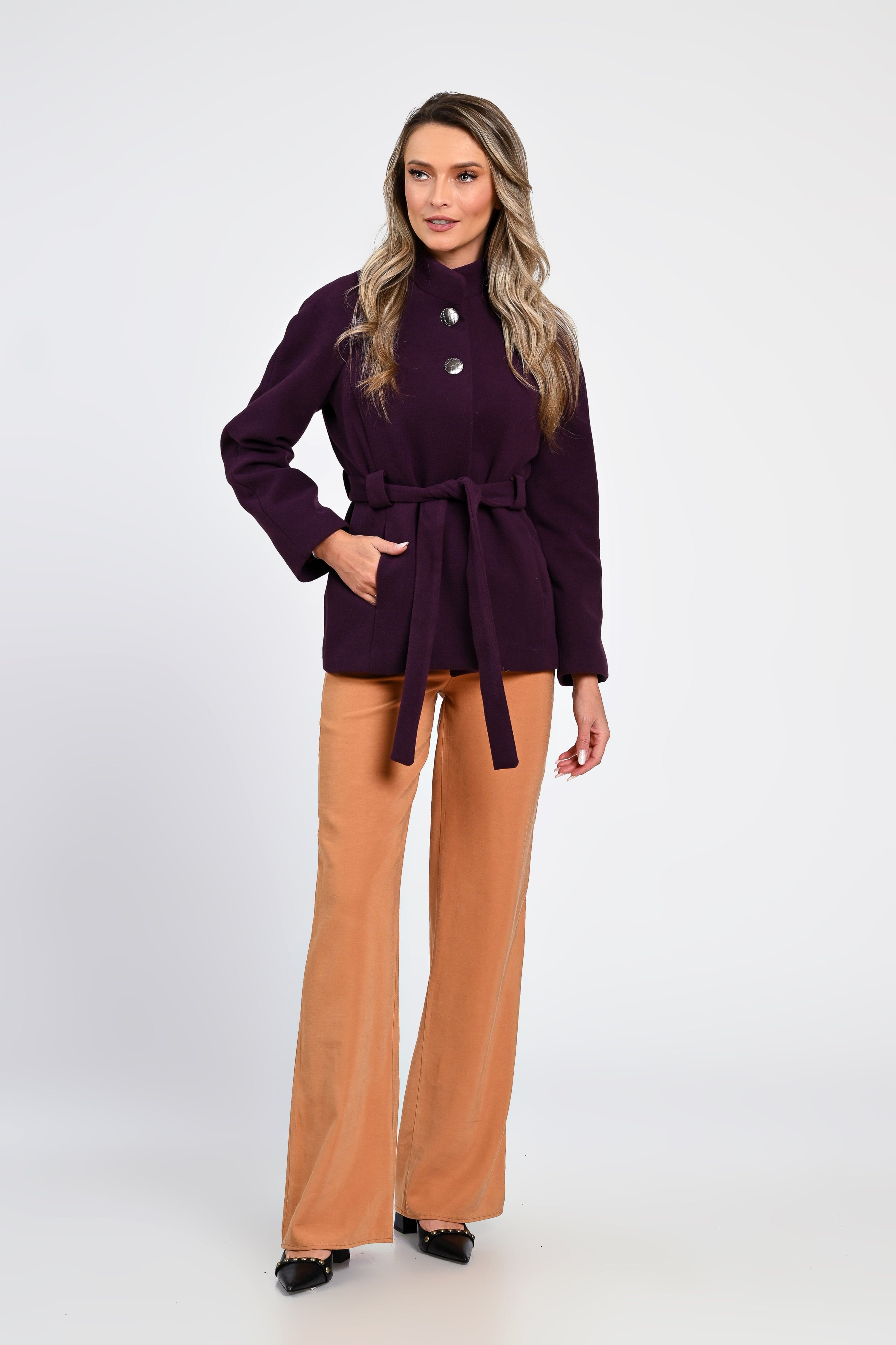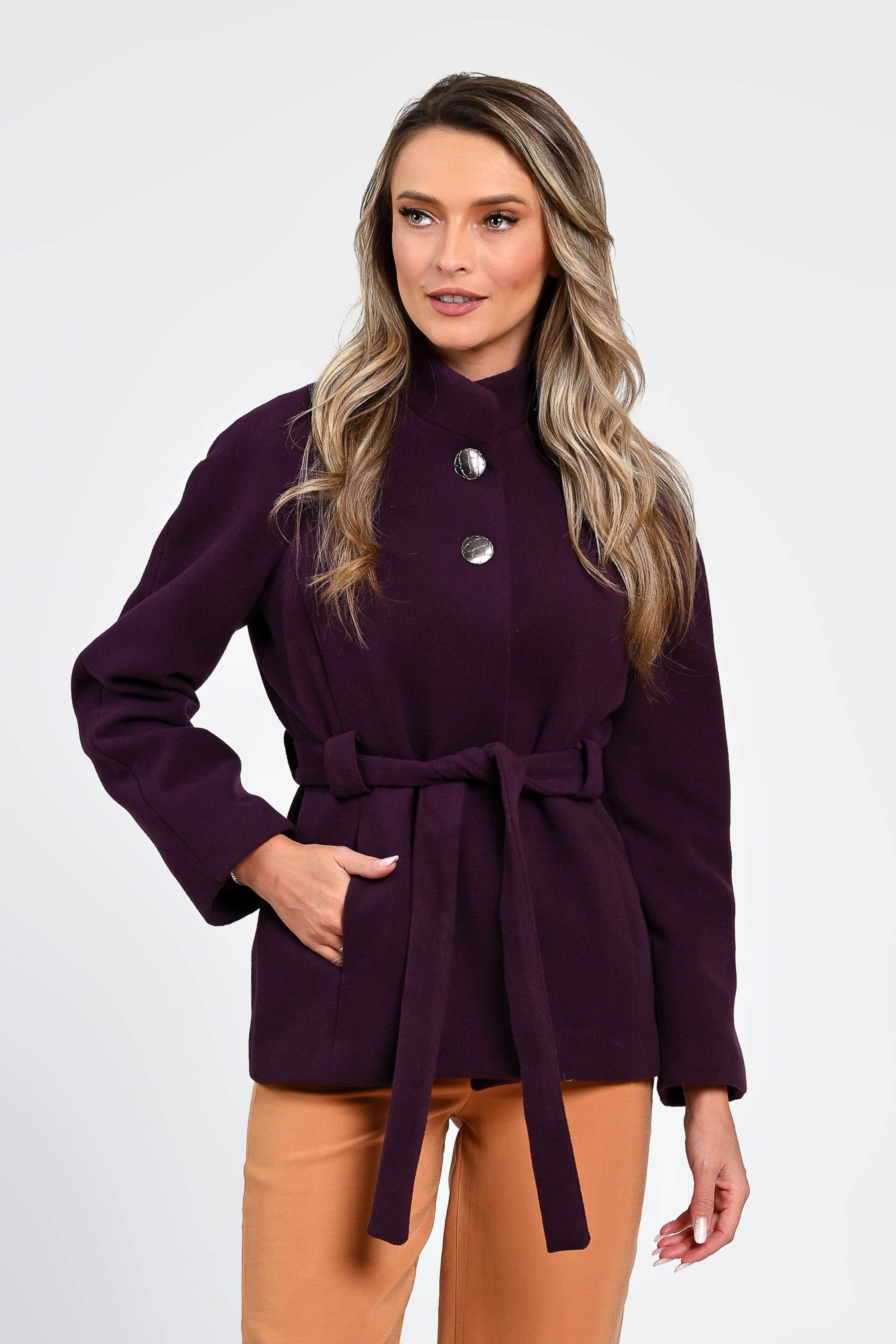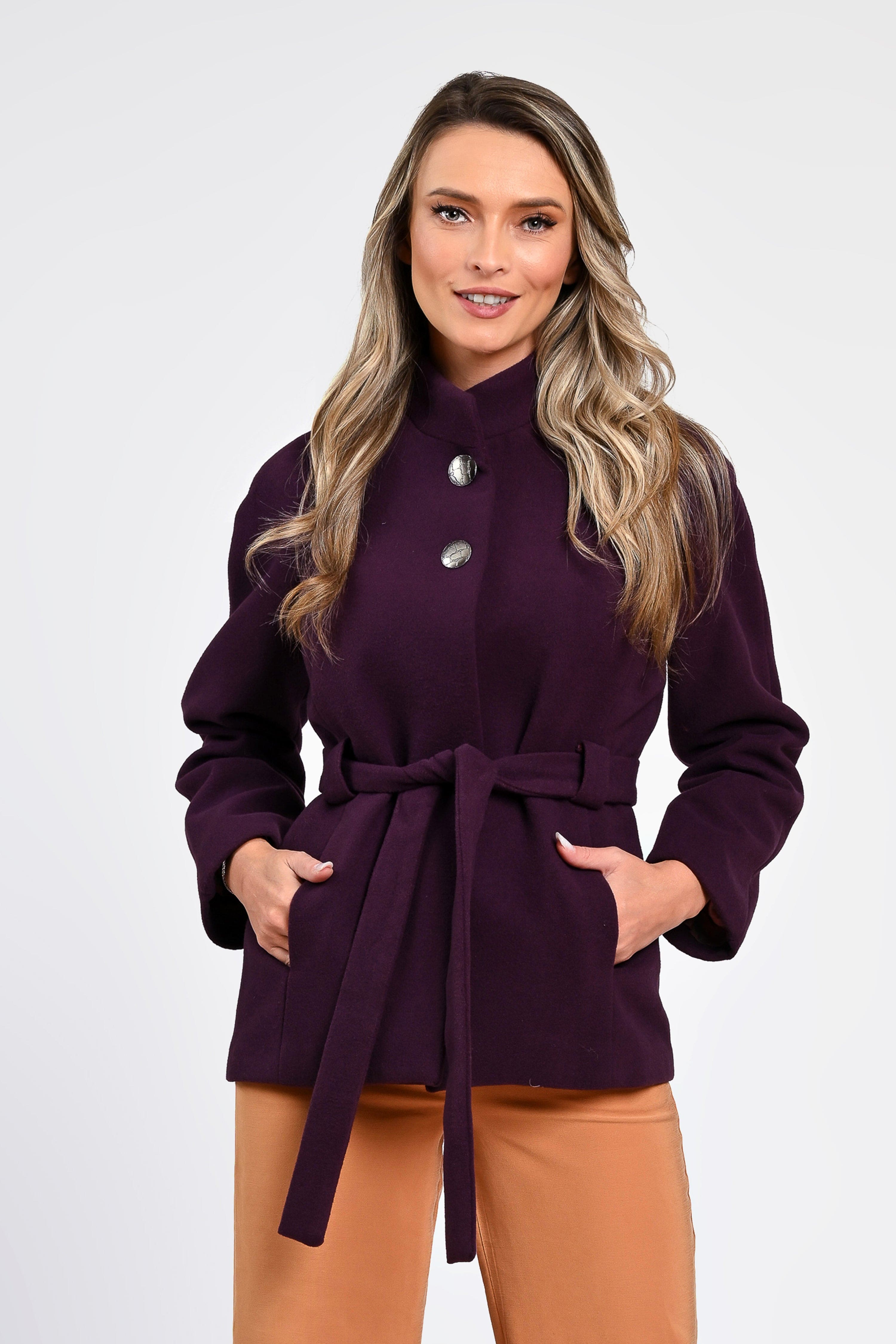 Jacheta Adriana emană eleganță și rafinament prin nuanța intensă de mov și designul clasic reinterpretat. Confecționată din material gros, plăcut la atingere, oferă confort termic și o ținută structurată. Croiala cambrată, cu guler înalt și nasturi metalici decorativi, subliniază finețea detaliilor, iar cordonul în talie accentuează silueta feminină. Cu buzunare funcționale și finisaje atent lucrate, este alegerea perfectă pentru zilele răcoroase în care vrei să te simți elegantă și încrezătoare.