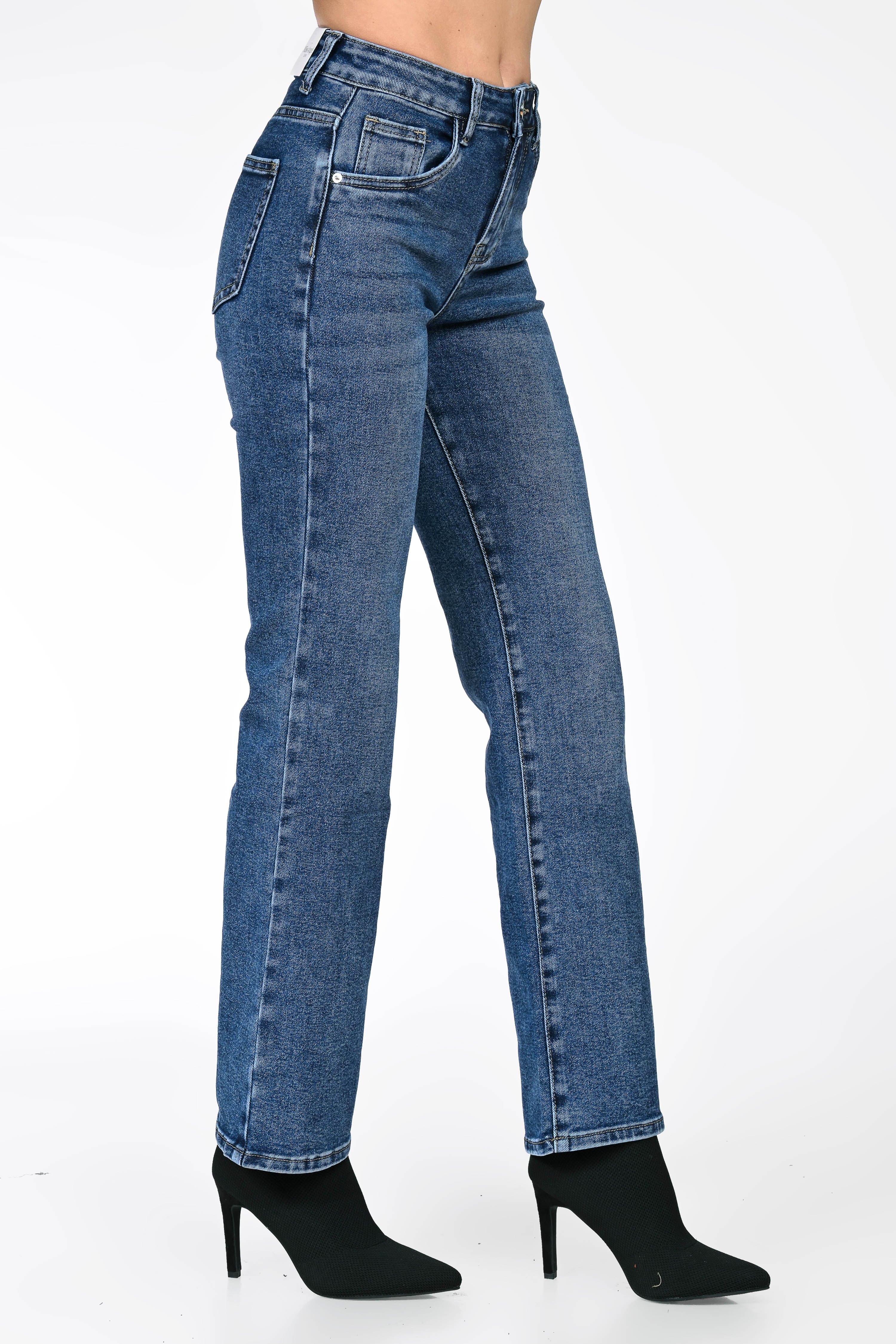 Jeans damă cu croială dreaptă, realizați din denim de calitate, rezistent și confortabil. Talie medie, care evidențiază silueta, și design clasic cu buzunare funcționale, potrivit pentru purtare zilnică.