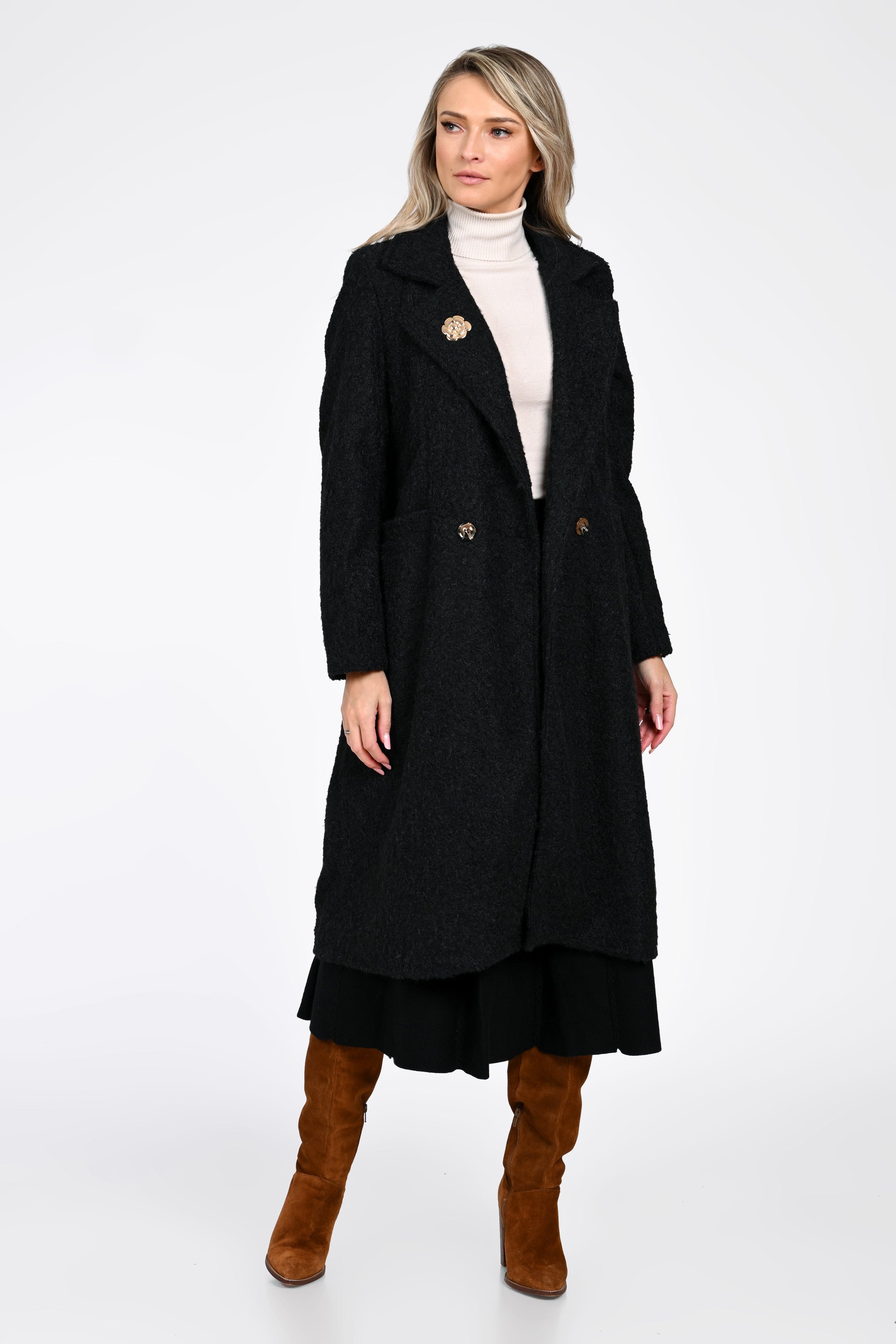 Paltonul Amara este expresia perfectă a eleganței moderne, creat pentru femeia care apreciază rafinamentul în fiecare detaliu. Realizat dintr-un material texturat, plăcut la atingere, acest palton negru midi oferă un plus de stil și distincție în sezonul rece.