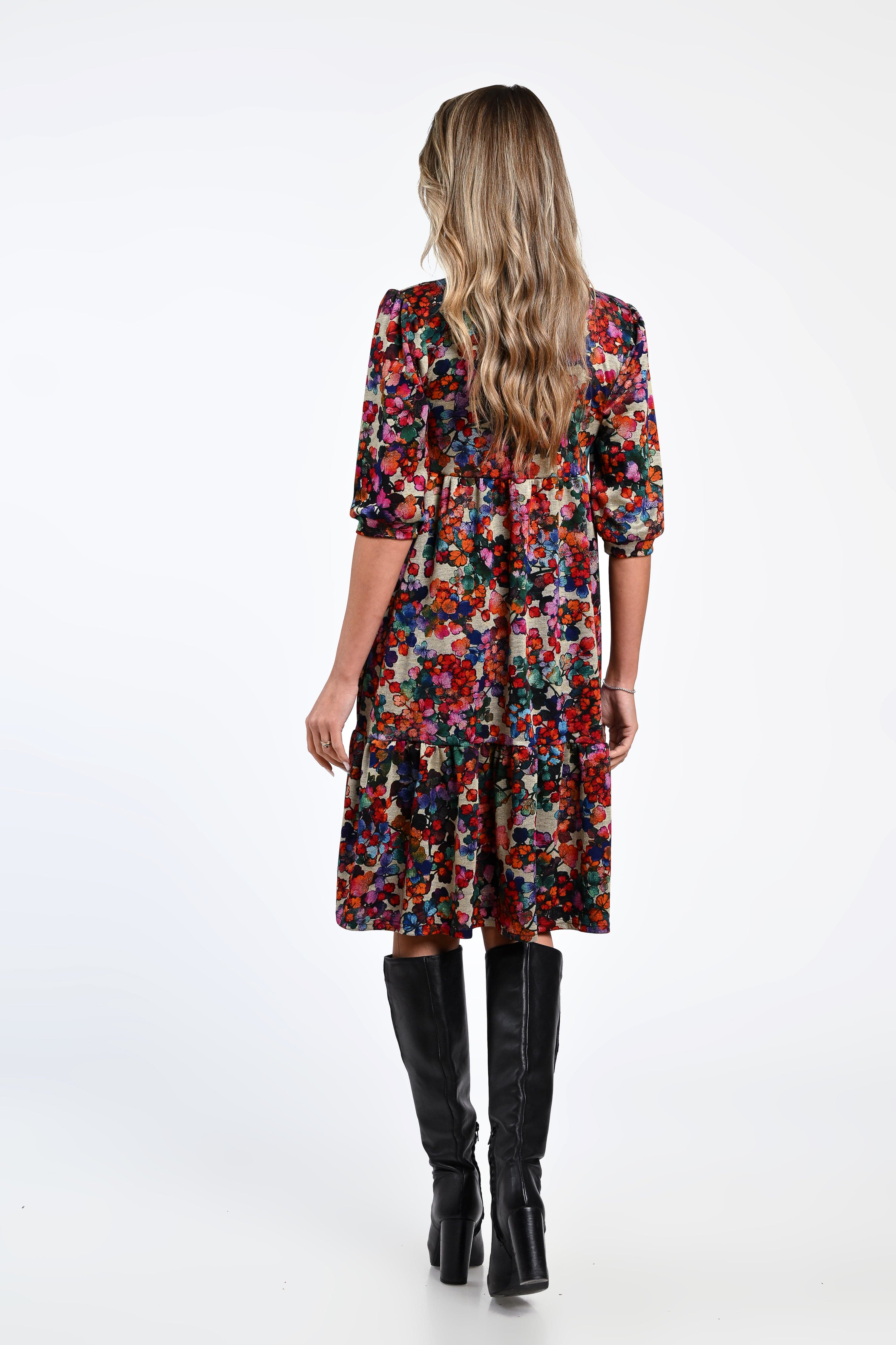 Rochia Adelina aduce un strop de culoare și energie în garderoba ta. Realizată din material plin cu conținut de vâscoză, oferă un echilibru perfect între lejeritate și structură. Croiala amplă, cu volan la bază și mâneci trei sferturi, asigură confort și libertate de mișcare, iar imprimeul floral vibrant transmite feminitate și optimism. O alegere ideală pentru zilele de toamnă, când vrei să îmbini stilul boem cu rafinamentul modern.