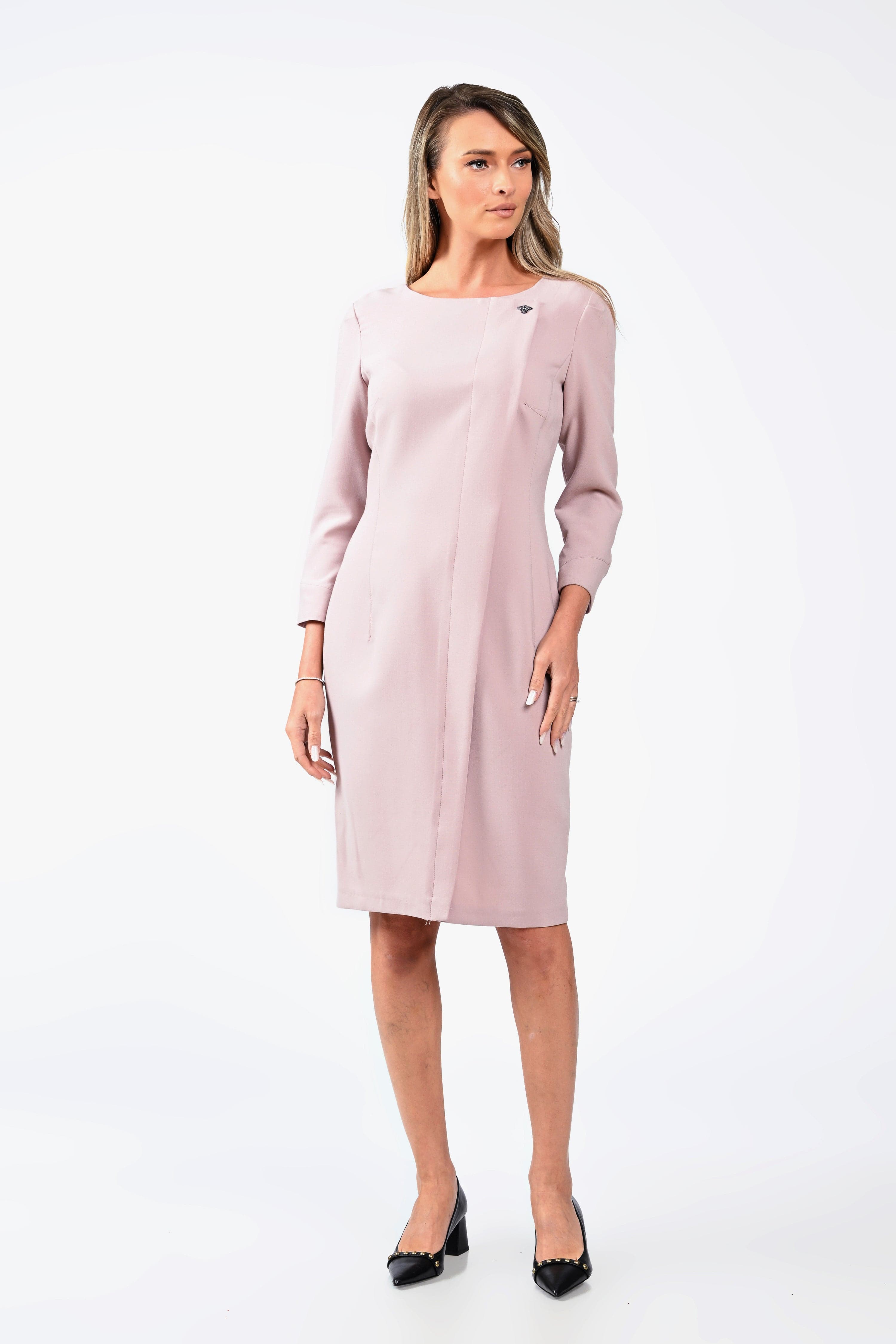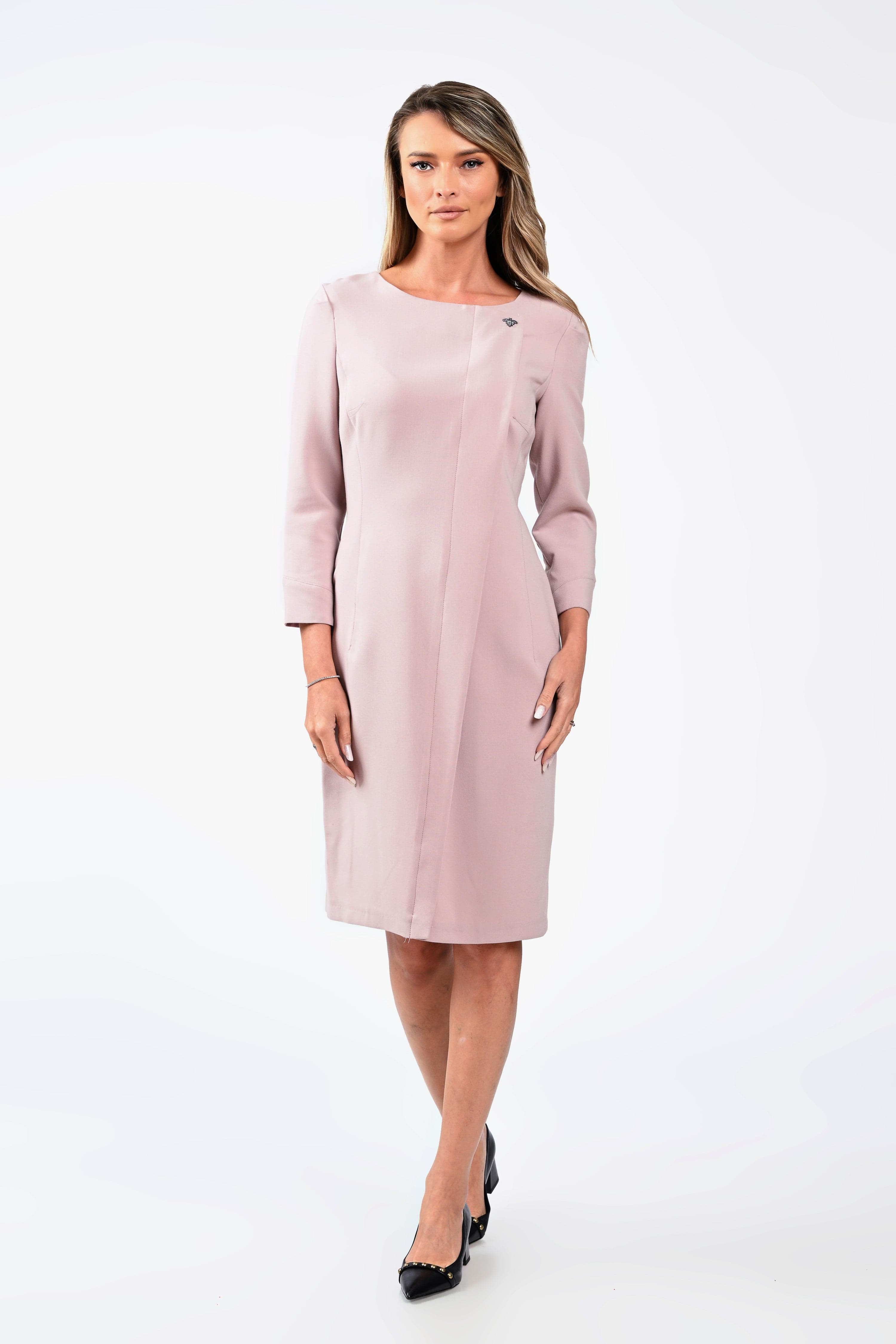 Rochie office roz pudră conică, cu detaliu asimetric – rochia Claire